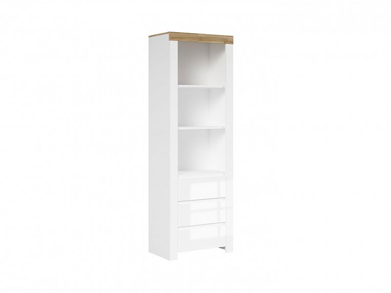 Tento krásný regál nabízíme v bílém provedení bílý lesk s dubem wotan. Vyrobeno z lamina.