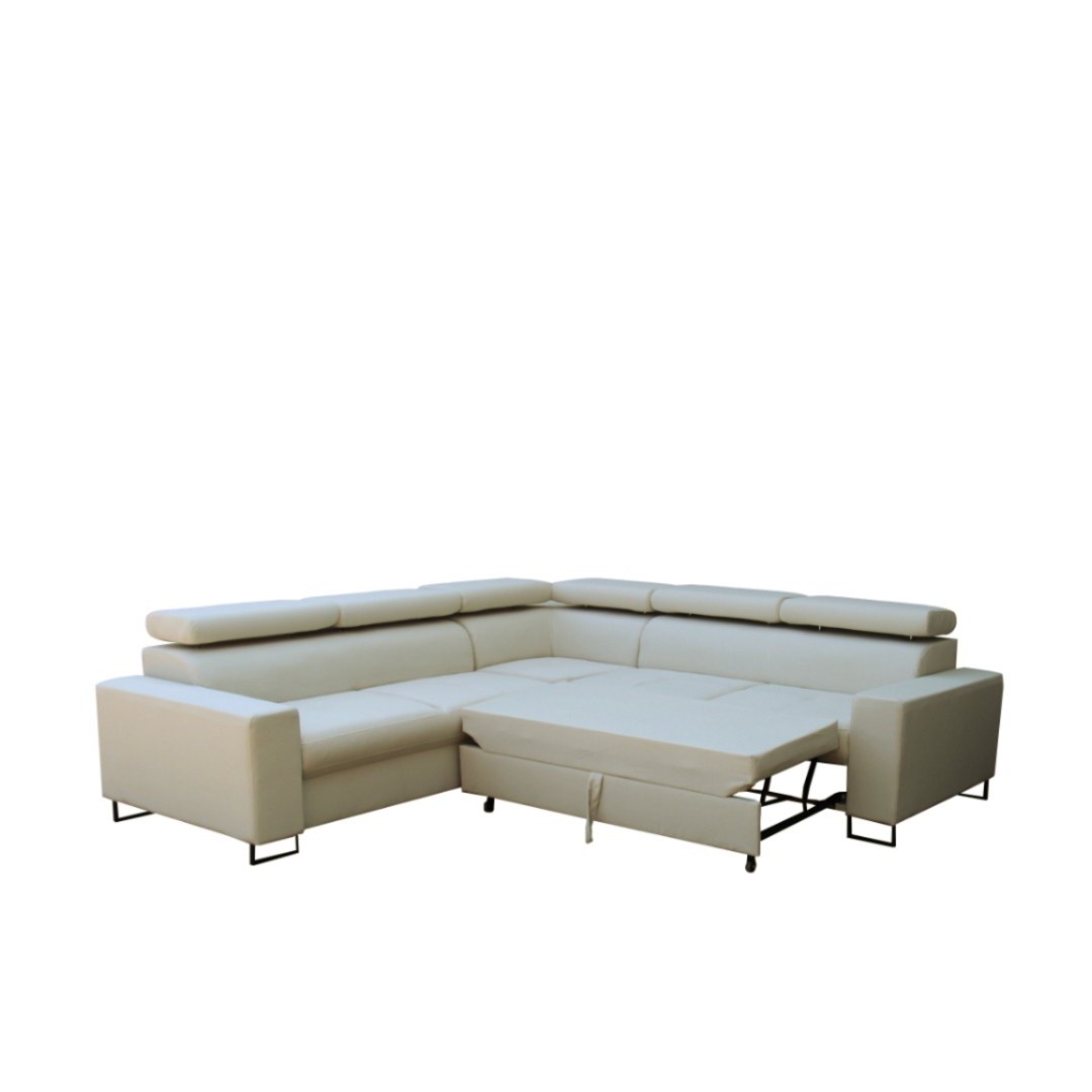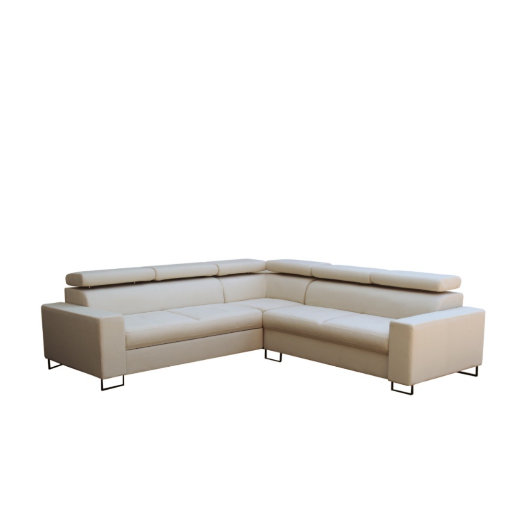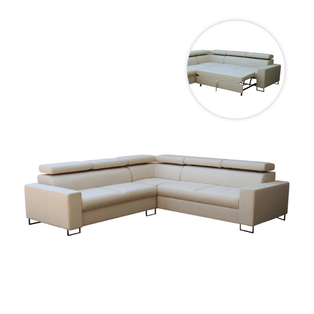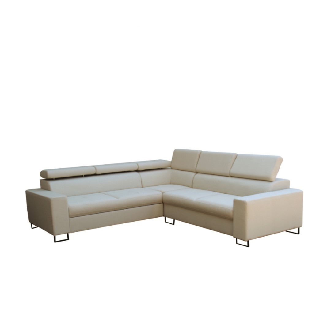 Sedací souprava HUGO I je vyrobená v pravém provedení (z pozice sedícího). Nabízíme i opačnou variantu. Barva je v tónu bílá káva látky Sand 03. Tato látka je hladká, odolná proti žmolkování - pro snadné čištění, vysoce otěruvzdorná. Možnost objednat také v jiných barvách viz doplňkové foto. V případě zájmu napište do poznámky číslo látky z fotografie. Doba výroby 6-8 týdnů. Pohodlné sezení zabezpečuje výplň - sedák - vlnitá pružina, PUR pěna, která zajišťuje opravdu velmi vysoký komfort, takže je ideální pro každodenní použití! K pohodlí rovněž přispěje 3x polohovací záhlavník. Výška sedačky je tak v rozmezí 87-107 cm.
