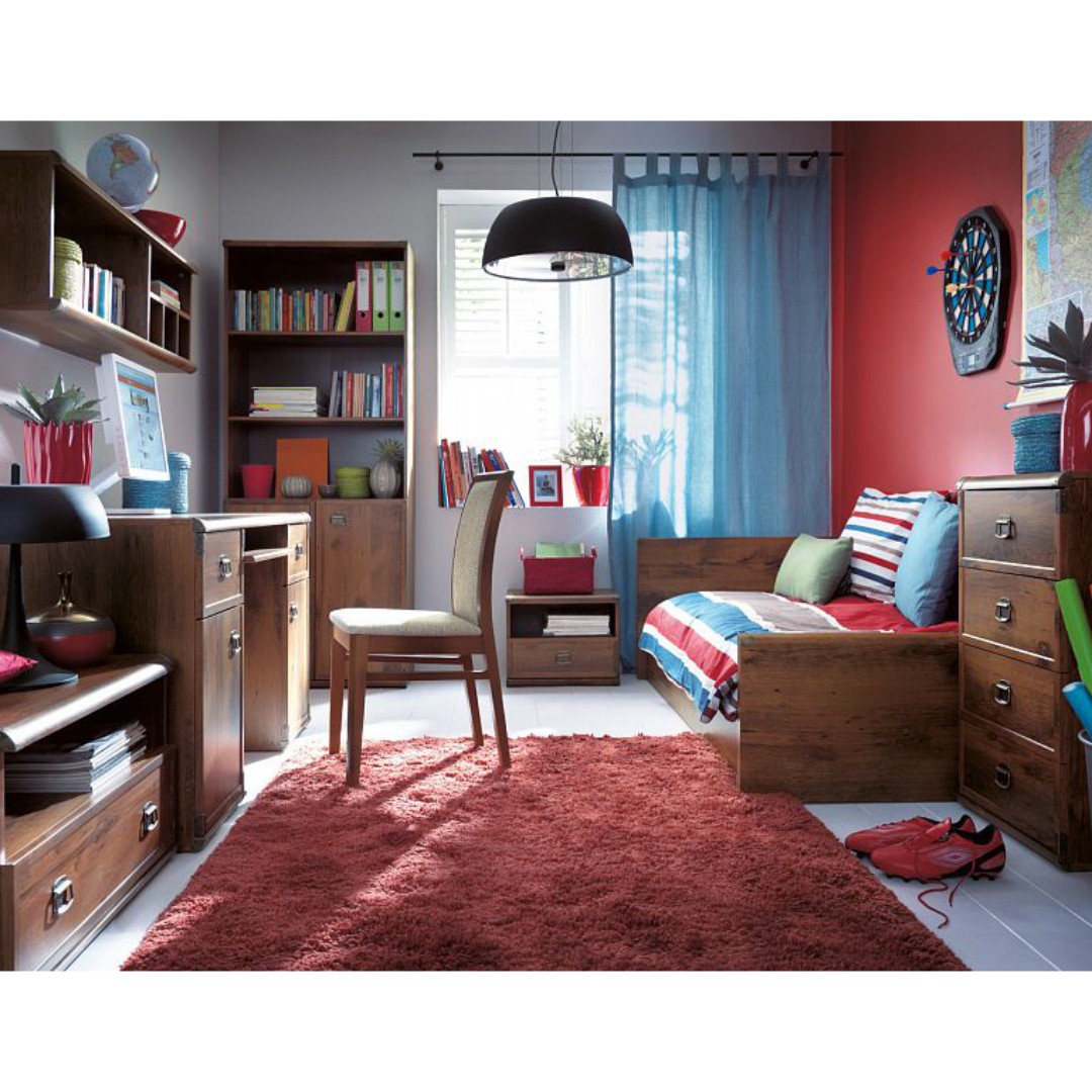 INDIANA II NEW je praktický nábytek ve stylu divokého západu se zajímavými detaily úchytů a ozdobným kováním na rozích nábytku. Díky mnoha prvkům jednoduše a vkusně zařídíte obývák, pracovnu, dětský pokoj nebo předsíň.