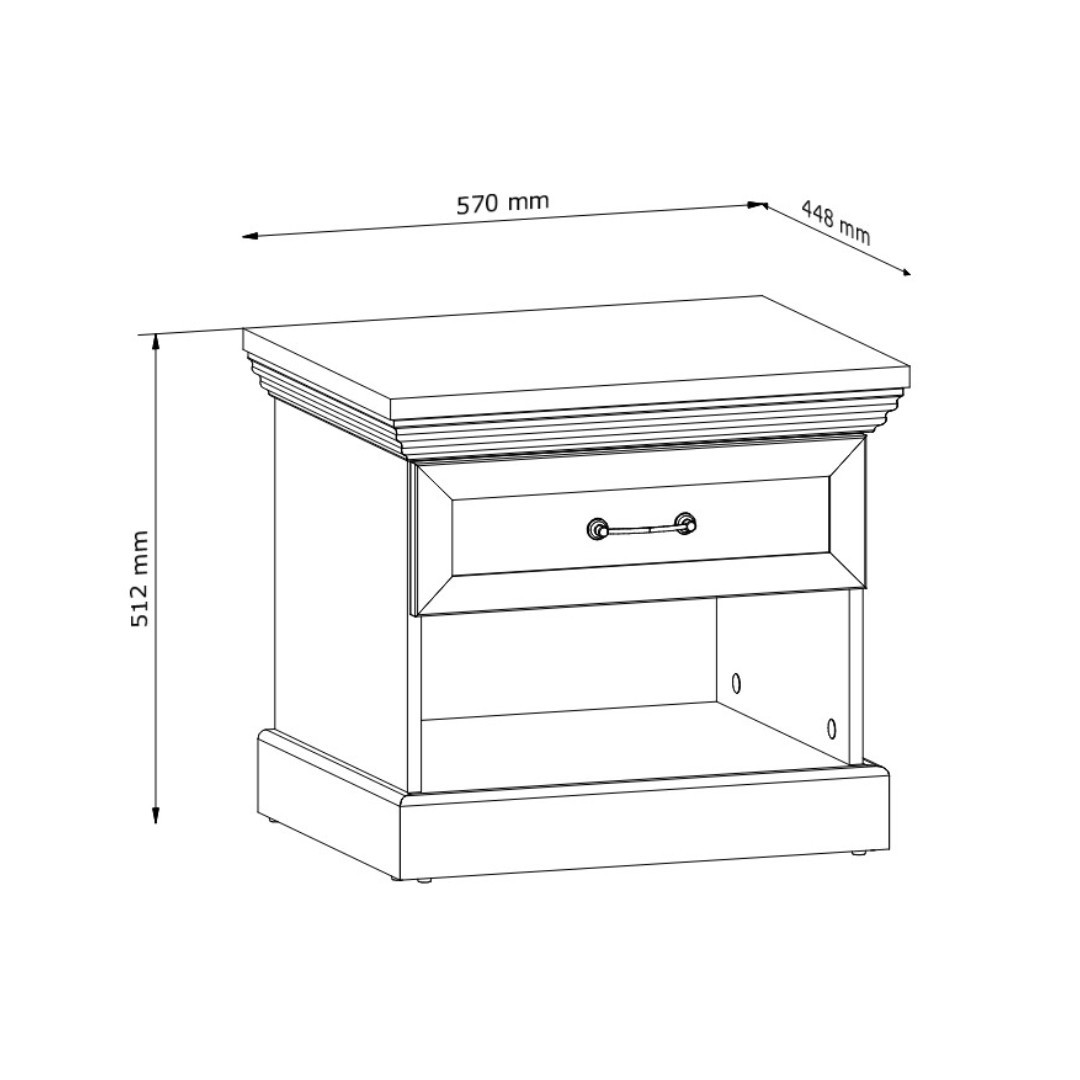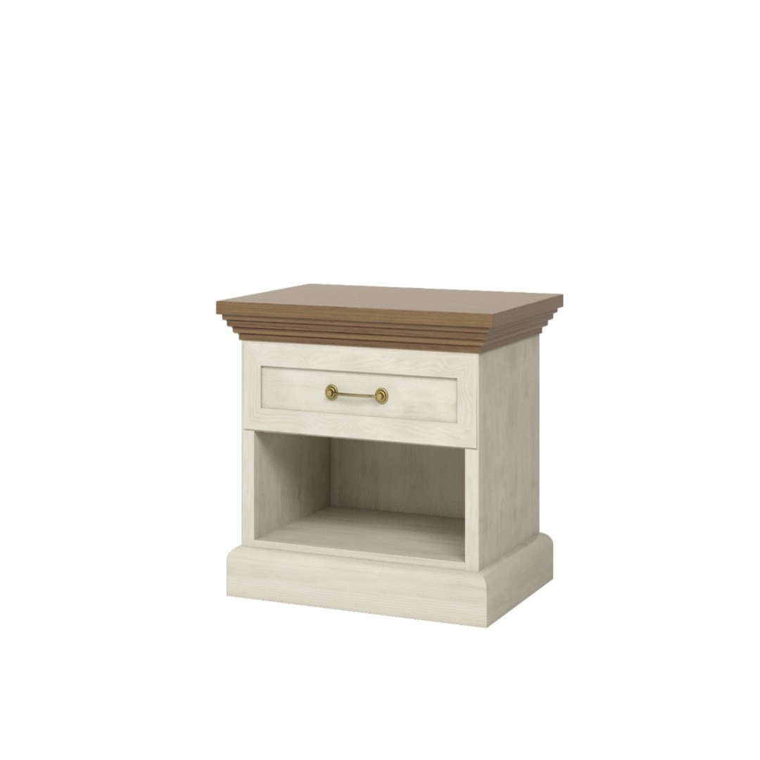 Světlé barevné provedení nočního stolku borovice bílá nordik/dub wild (vrch) krásně prosvětlí interiér a snadno se sladí s ostatním vybavením ve venkovském či klasickém stylu. Jemné detaily a tradiční design dodají místnosti osobitý šarm, který zaujme na první pohled.