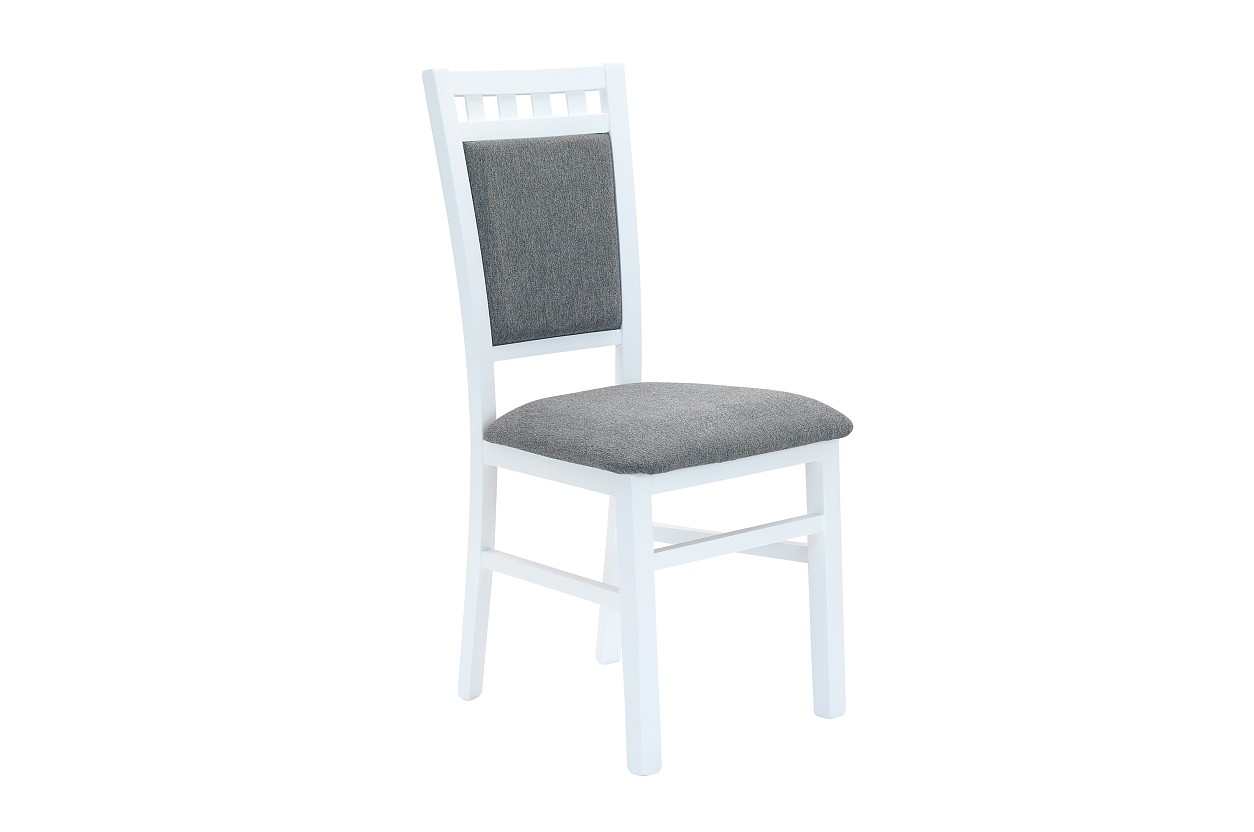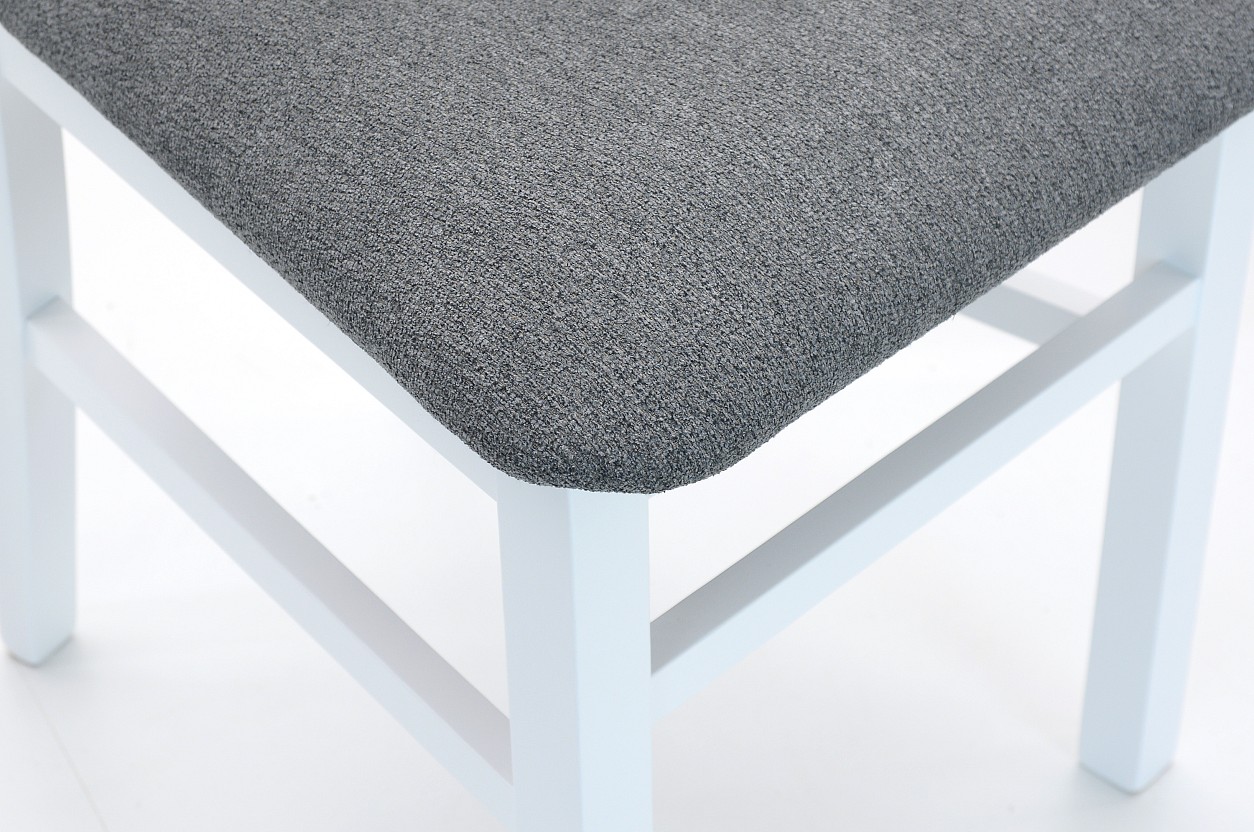 Tato jídelní židle má dřevěnou konstrukci z masivního bukového dřeva v bílé barvě. Čalounění je v šedém tónu - látka SS21. Bude se vyjímat jak v kuchyni, tak i v jídelním koutě, kterému dodá útulnosti.