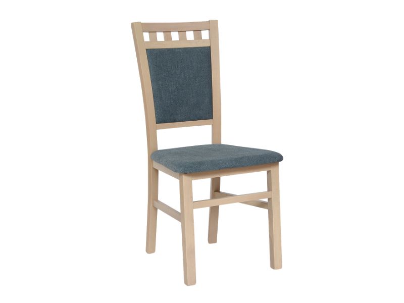 Jídelní židle DENIS NEW je vyrobena z přírodního dřeva v barevném provedení dub sonoma. Potahová látka je v šedém tónu PW14.