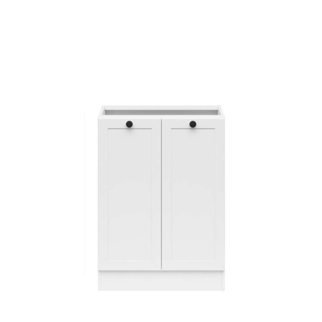 Tato skříňka v bílé barvě. S dvěma dvířky a knoflíkovým úchytem nabízí dostatek úložného prostoru pro vaše kuchyňské potřeby. Za dvířky najdete praktickou polici, která vám usnadní organizaci a udržení věcí v pořádku.