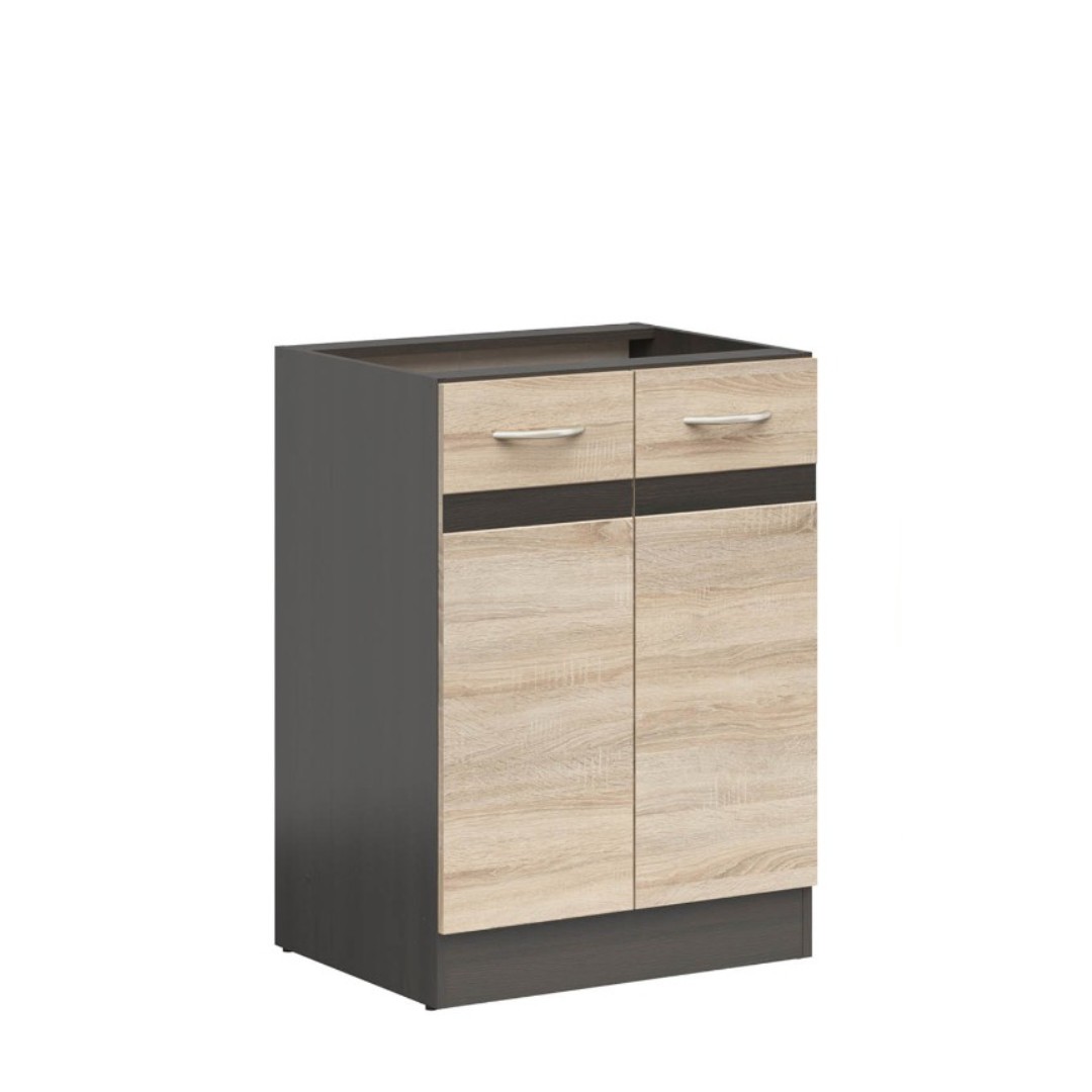 Tato skříňka je vyrobenav barevné kombinaci wenge/dub sonoma. Korpus - wenge. Barevné propojení dodává skříňce elegantní a moderní vzhled, který snadno začleníte do různých kuchyňským interiérů.