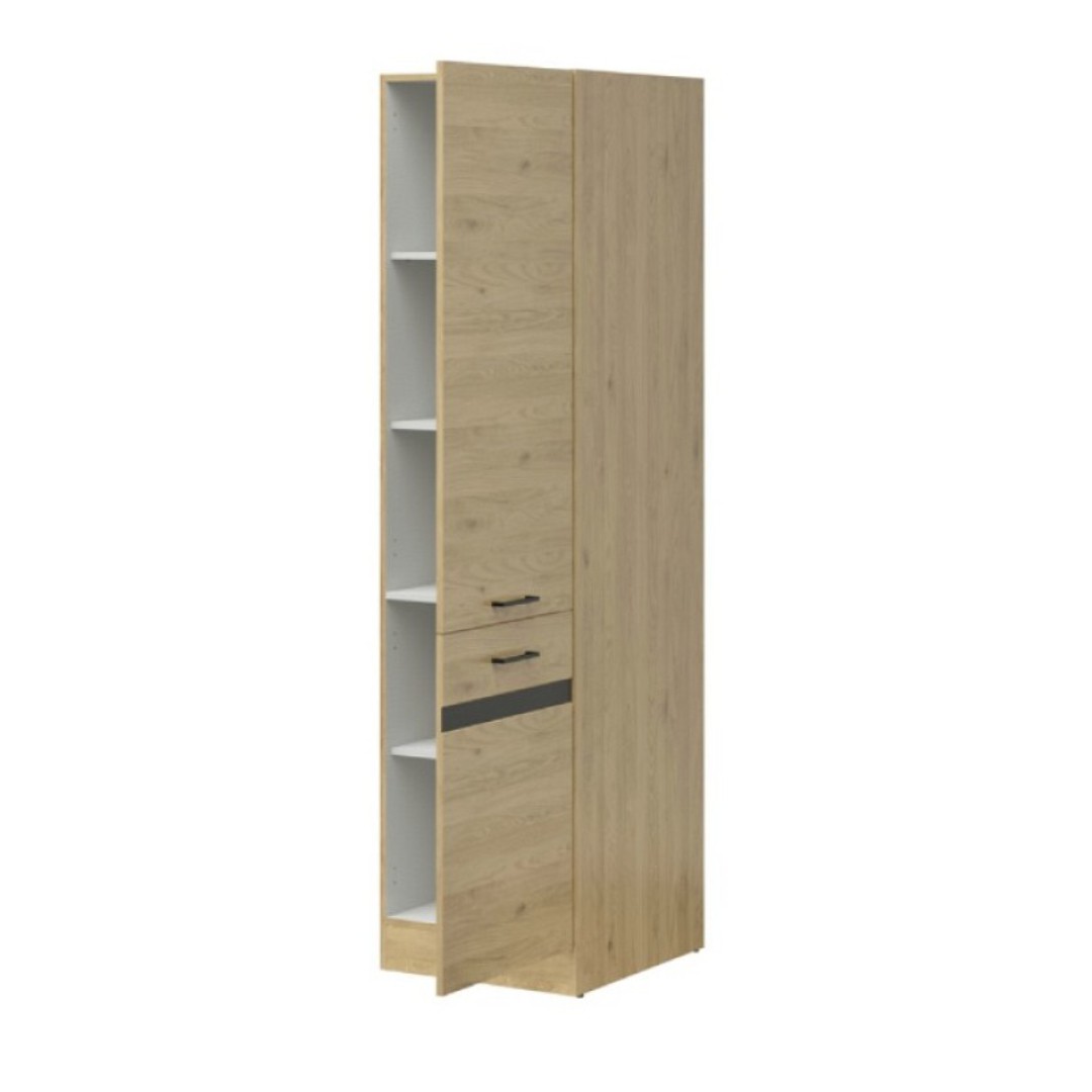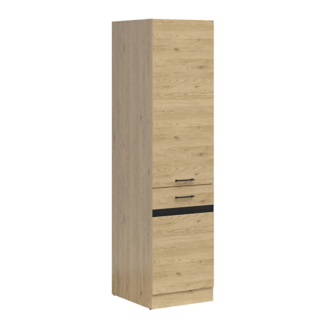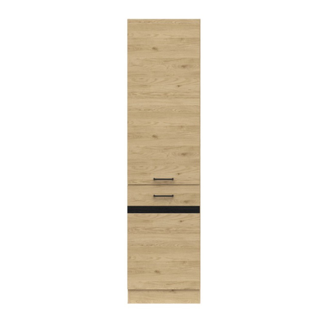 Potravinová skříňka Junona D2D/50/195-P v barevném provedení dub bernstein, lišta dub černý. Její otevírání je vpravo. V nabídce také opačná varianta...