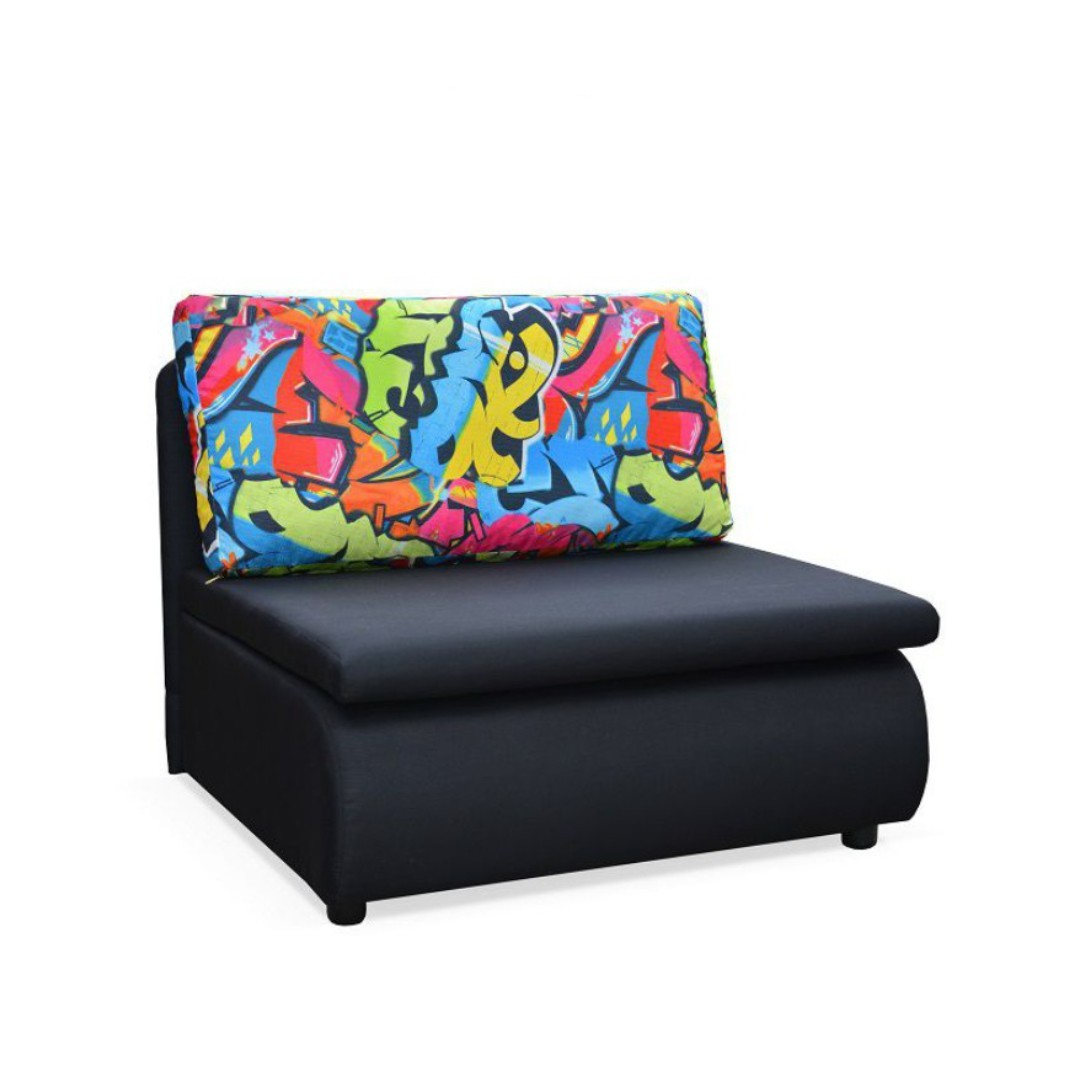 Pohovka Kamil - Graffiti vás zaujme především svým nápaditým a hravým designem. Tuto pohovku si oblíbí teenageři, kteří zatouží, mít ji u sebe v pokoji. Její potah s motivem graffiti dodává moderní vzhled, který si teenageři zamilují a skvěle zapadne do jejich pokojů. Kromě stylového vzhledu je pohovka také praktická, neboť se dá snadno rozložit na lůžko s velikostí 100 x 190 cm a nabízí úložný prostor o rozměrech 83 x 51 cm. ..