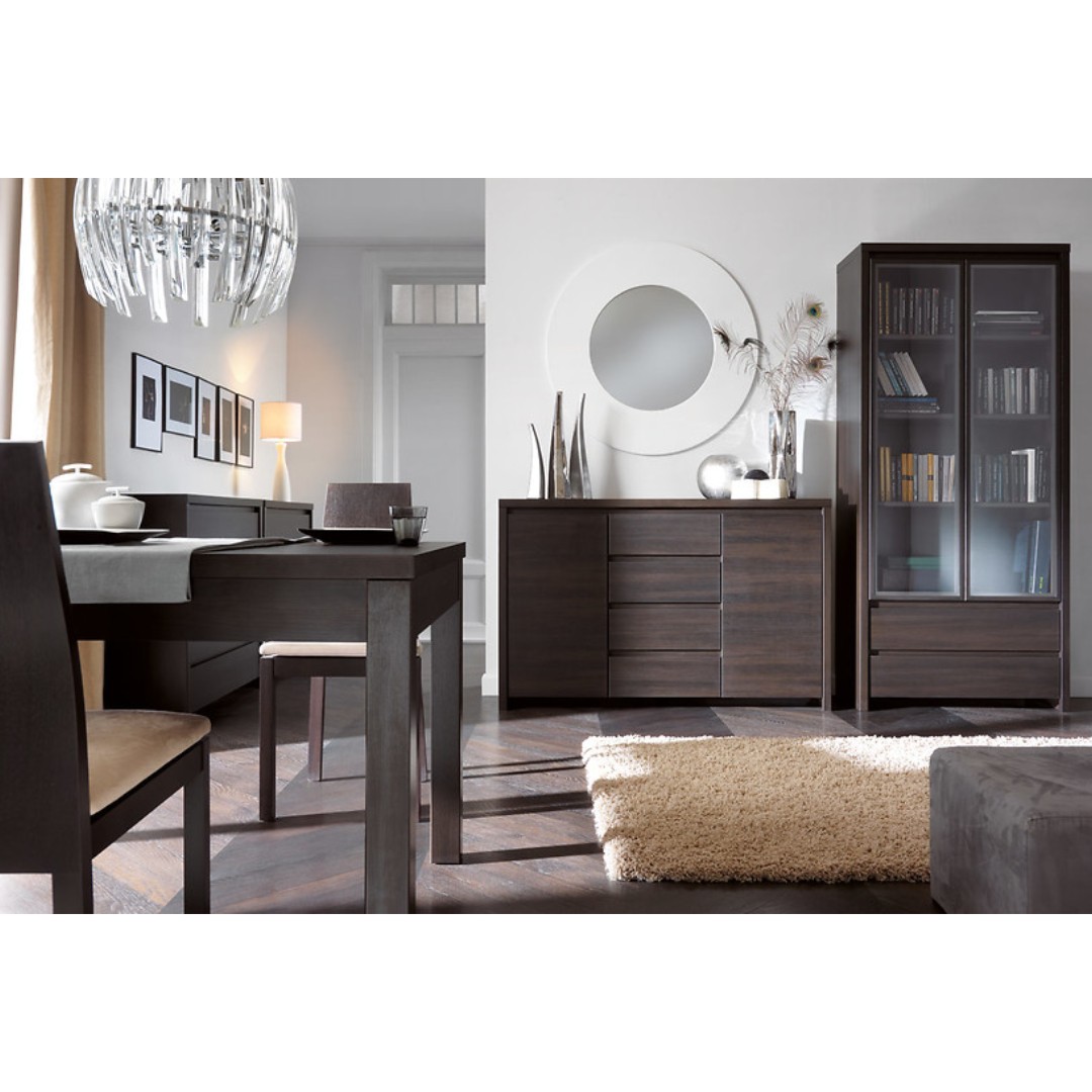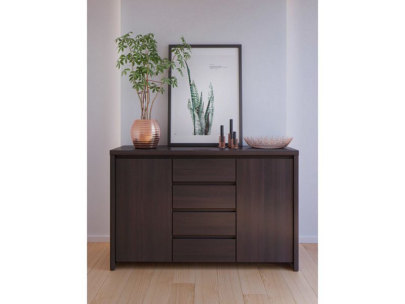 Komoda/příborník ze systému Kaspian (KOM2D4S) je vyrobena v barevném provedení Wenge. Je to praktický pomocník se 4 zásuvkami a 2 skříňkami s vnitřními prostory oddělenými poličkou. Poskytuje tak dostatek úložného prostoru a usnadní tak udržení pořádku. Tvarovaná přední hrana dvířek a čelních zásuvek umožňuje bezúchytkové otvírání...