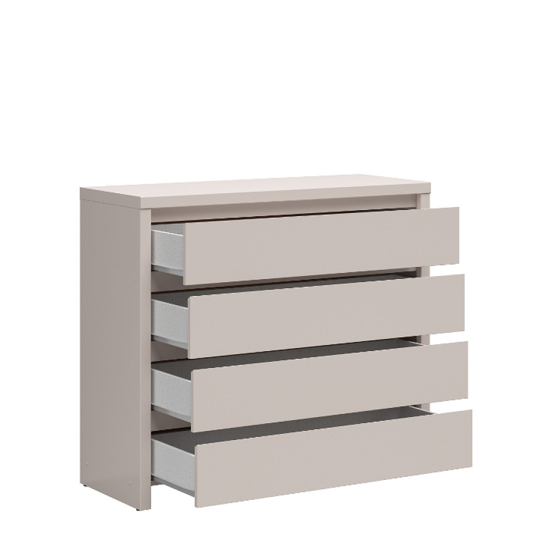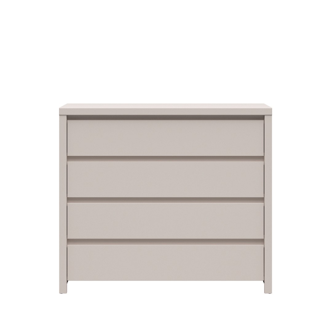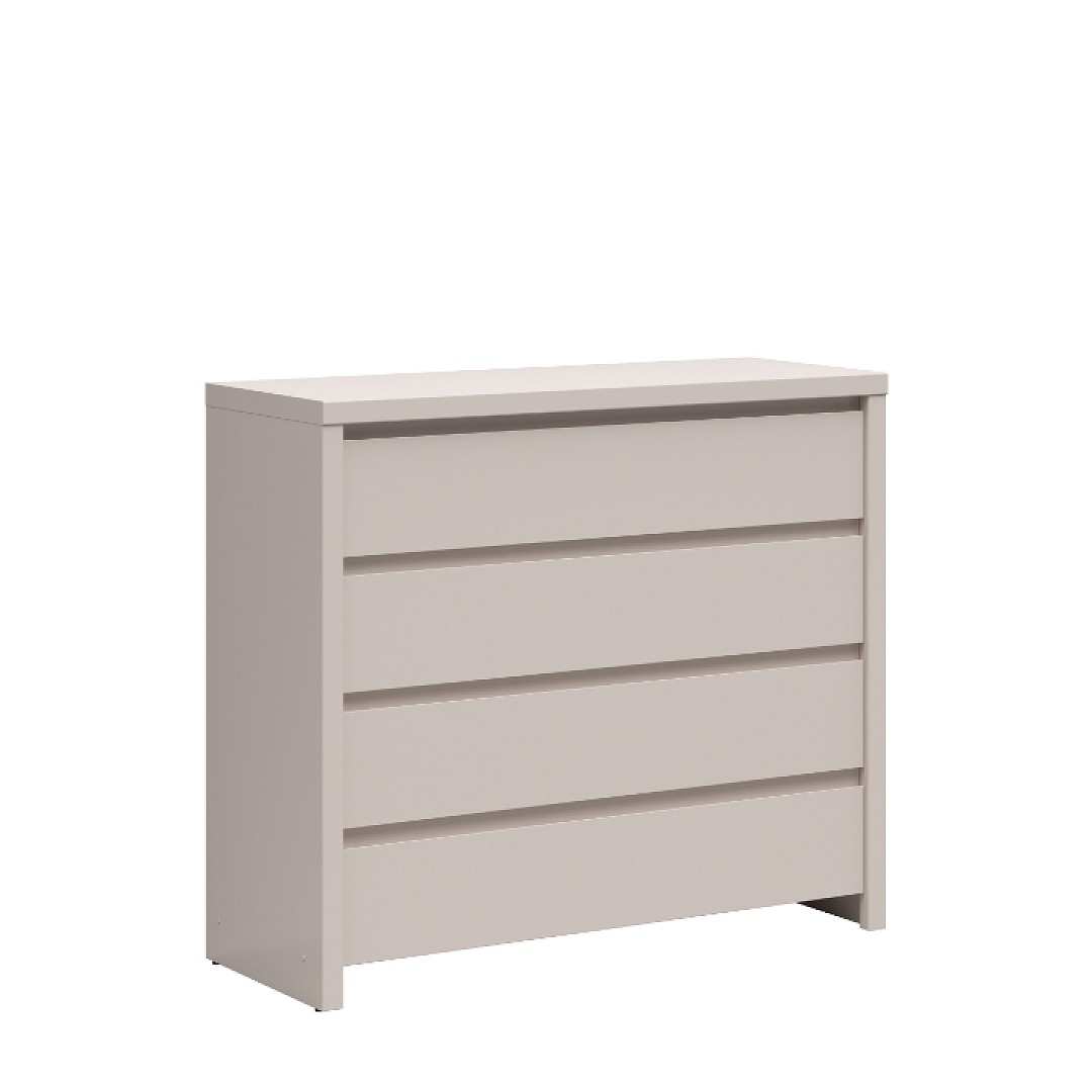 Minimalistický design komody KASPIAN KOM4S v kašmírovém provedení vkusně doplní každý moderní interiér. Čtyři prostorné zásuvky poskytují dostatek prostoru pro vše důležité – od drobného šatstva až po pracovní podklady, a to vše v nadčasovém vzhledu...