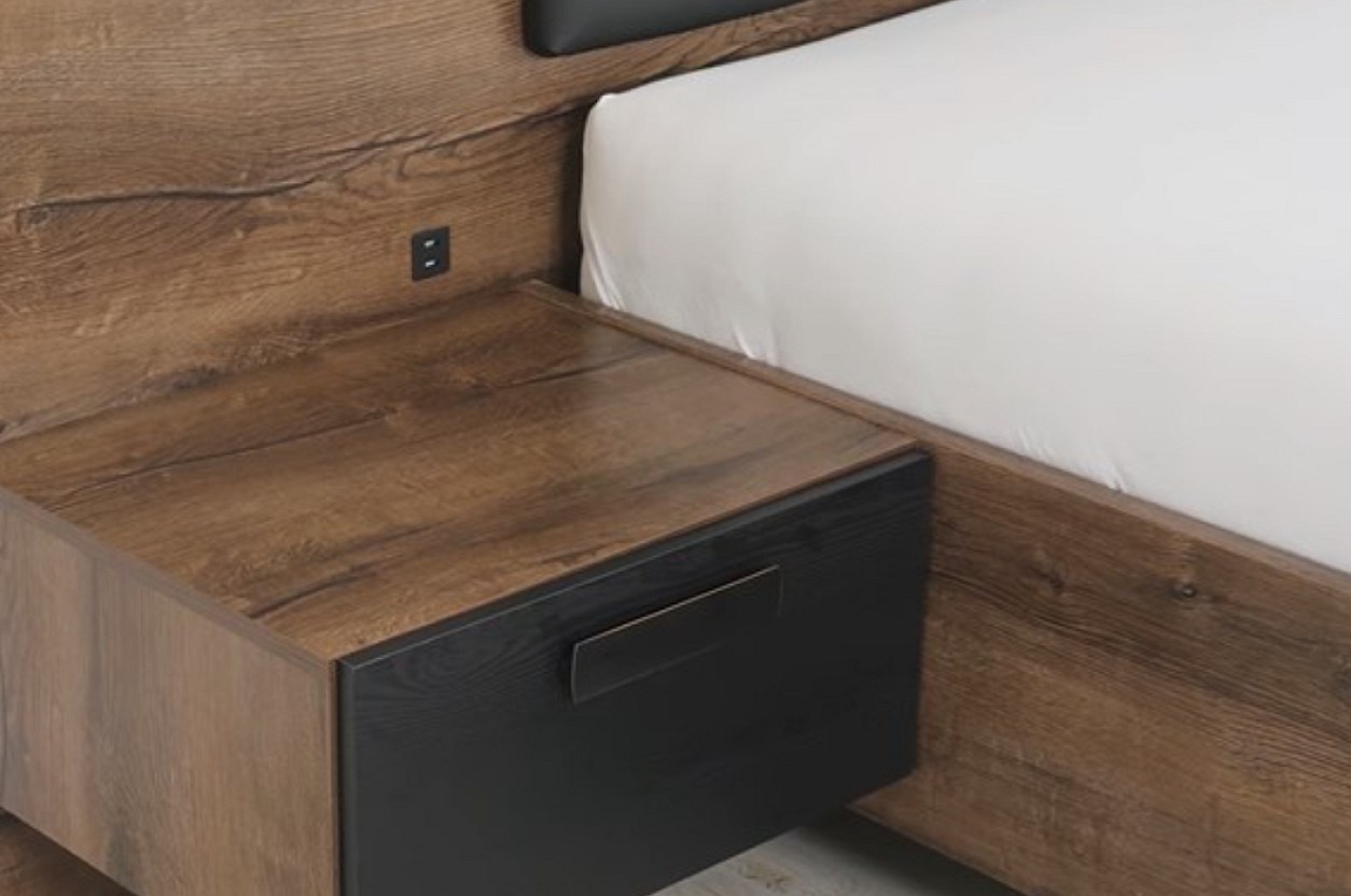 Noční stolky mají k dispozici šuplík. Jeho rozměr je 43 x 12 x 35 cm a jeho maximální nosnost je 4 kg. Výška lehu je 42 cm.