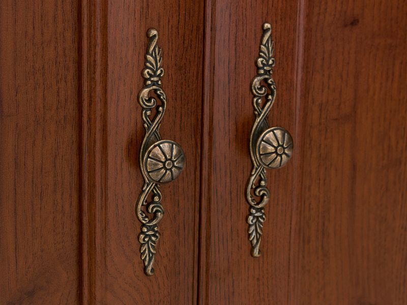 Klasický nábytek Kent vás zaujme vkusným, ale bohatým zdobením, detailně frézovanými a umělecky patinovanými úchytkami z kovu. Také vyřezávané lišty, sokly a dvířka nebo fazetované hrany skel vitrín dodávají celé kolekci historický vintage nádech.