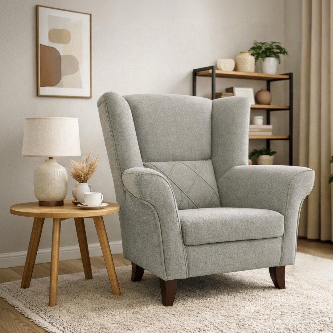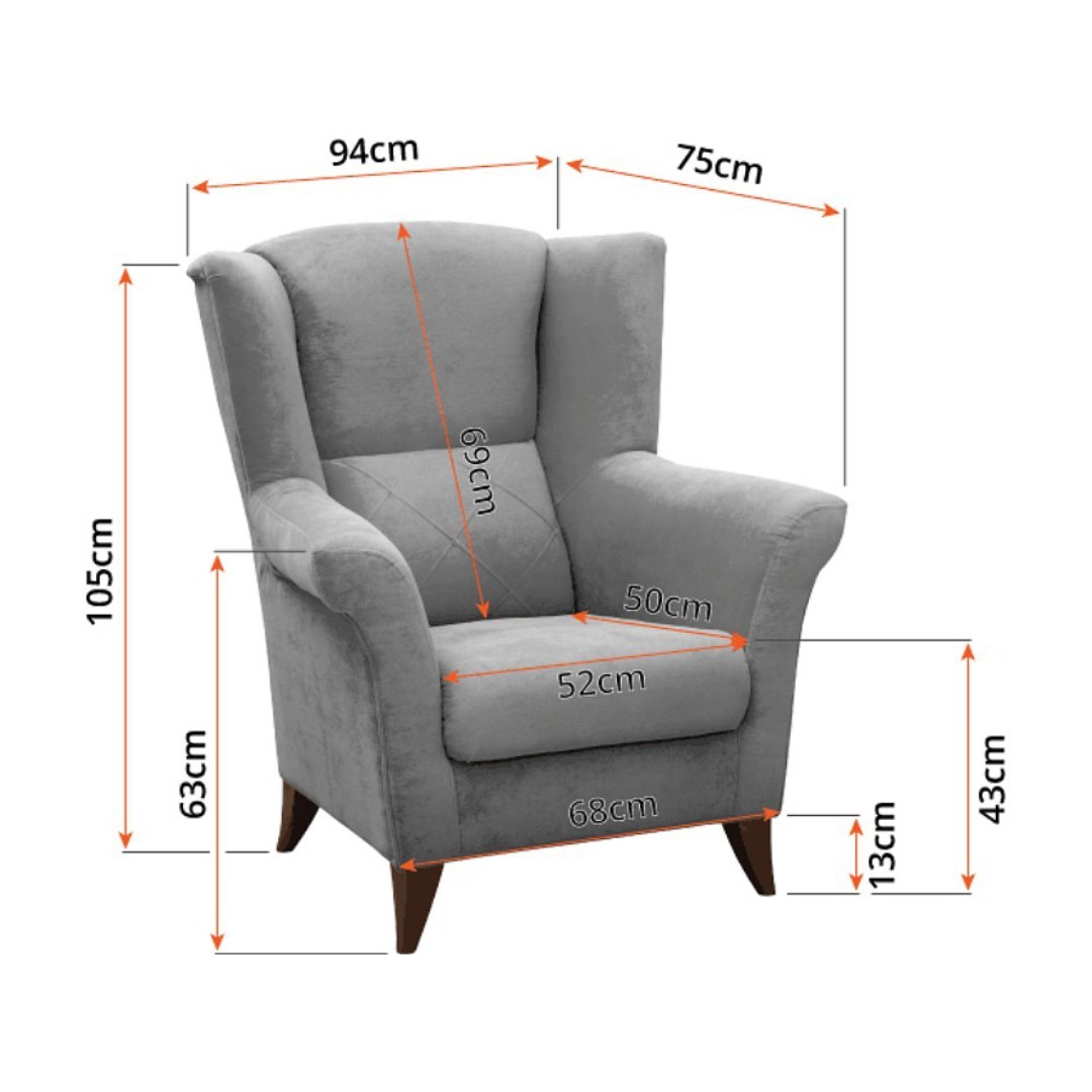 Barevné provedení je v hnědošedé barvě látky Aragon 20. V nabídce další barvy viz barevné varianty. Výška sedu je 43 cm. Šířka sedáku 52-47 cm - zužuje se. Tvarované opěradlo poskytuje oporu páteři a zlepšuje pohodlí při sezení. Dřevěné nohy v barvě ořechu zajímavého tvaru dozajista také zaujmou na první pohled. Dodávají křeslu moderní nádech a lehký designový vzhled.