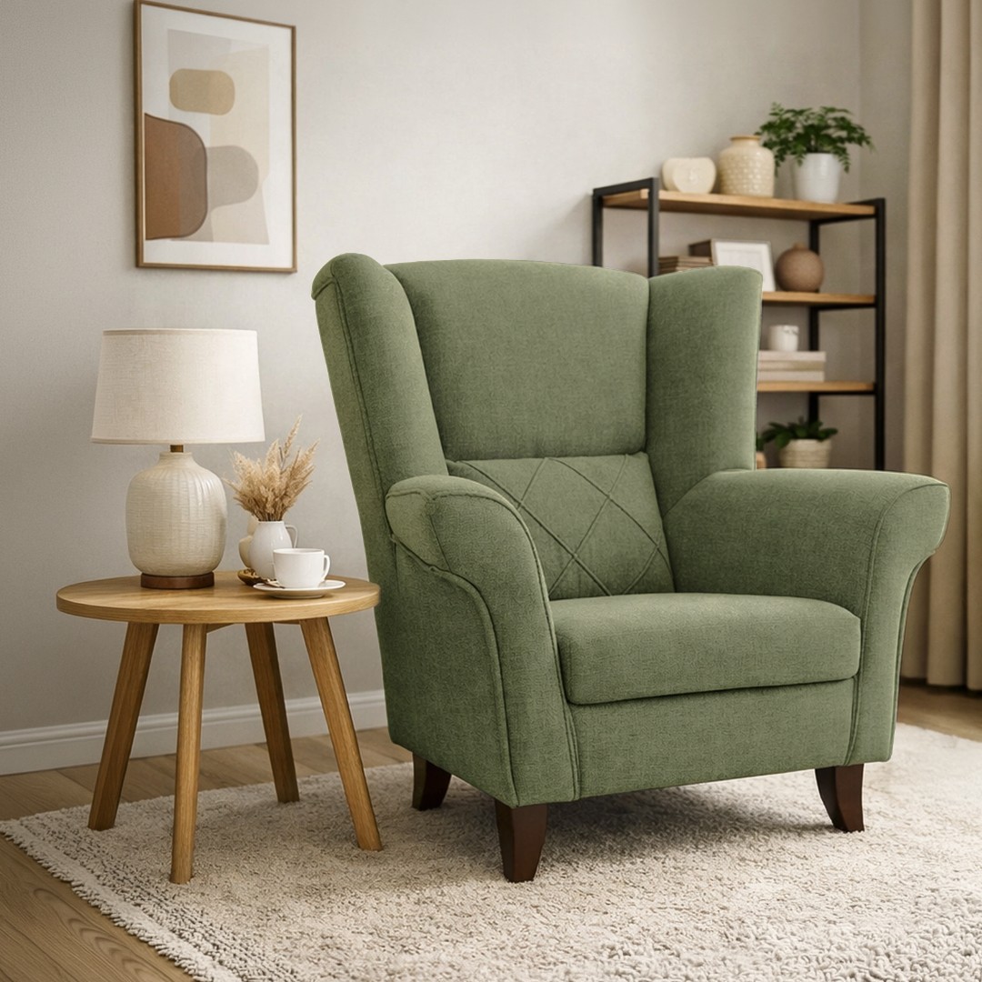 Barevné provedení je v olivové barvě látky Aragon 39. V nabídce další barvy viz barevné varianty. Výška sedu je 43 cm. Šířka sedáku 52-47 cm - zužuje se. Tvarované opěradlo poskytuje oporu páteři a zlepšuje pohodlí při sezení. Dřevěné nohy v barvě ořechu zajímavého tvaru dozajista také zaujmou na první pohled. Dodávají křeslu moderní nádech a lehký designový vzhled.