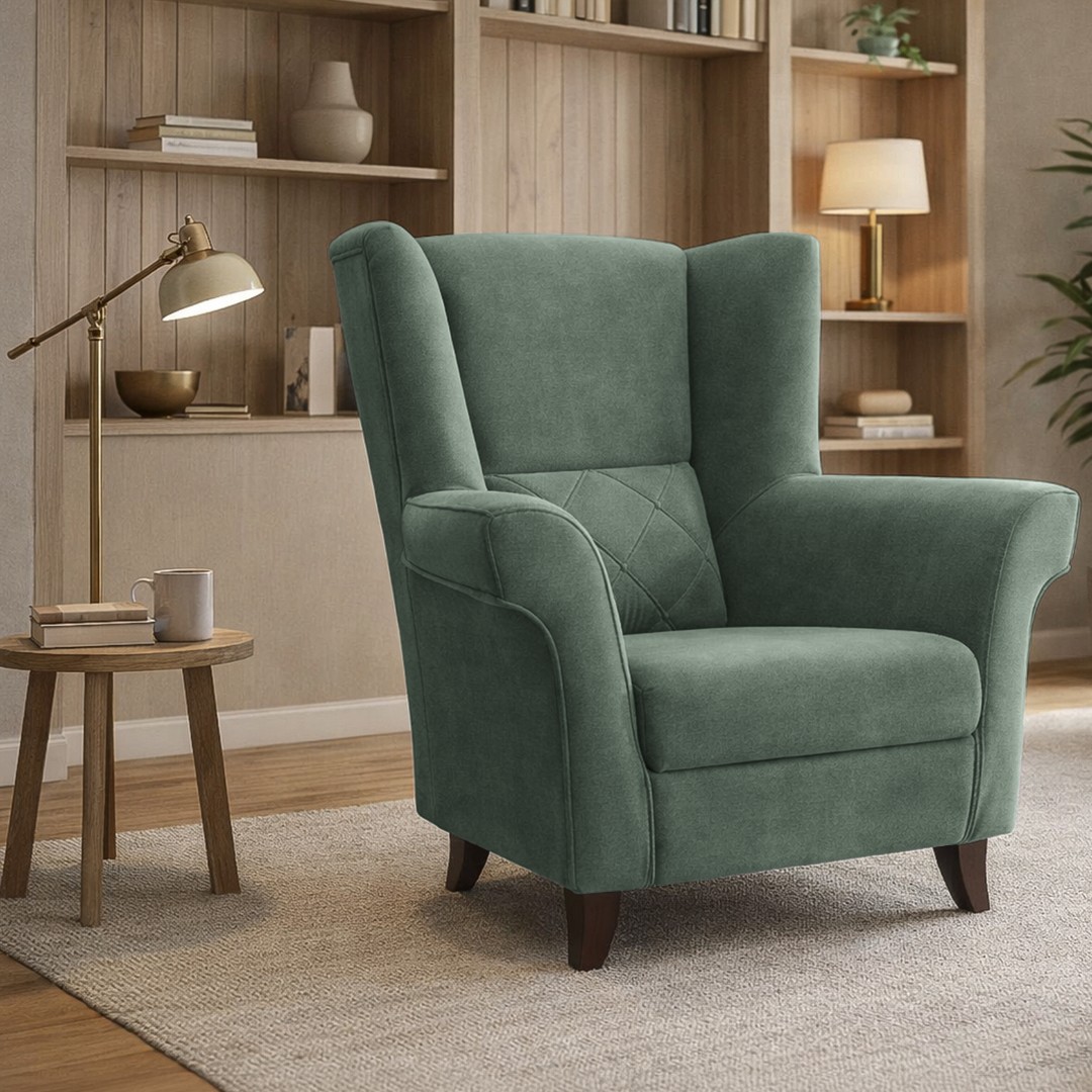Barevné provedení je v olivové barvě látky Castel 39. V nabídce další barvy viz barevné varianty. Výška sedu je 43 cm. Šířka sedáku 52-47 cm - zužuje se. Tvarované opěradlo poskytuje oporu páteři a zlepšuje pohodlí při sezení. Dřevěné nohy v barvě ořechu zajímavého tvaru dozajista také zaujmou na první pohled. Dodávají křeslu moderní nádech a lehký designový vzhled.