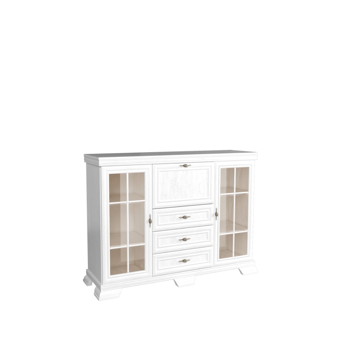 Objevte spojení elegance a všestrannosti v modelu KOBE KK6. Tato vitrína nenabízí pouze luxusní vzhled inspirovaný klasikou, ale také nečekanou variabilitu, díky které se stane ideálním místem pro vaše nejcennější sbírky i každodenní předměty. Horní část vitríny je osazena prosklenými dvířky s elegantním členěním, která jsou jako stvořená pro vystavení rodinného porcelánu nebo vzácných dekorací. Sklo v kombinaci s odstínem dřeva borovice bílá andersen dodává interiéru hloubku a nádech historického luxusu...