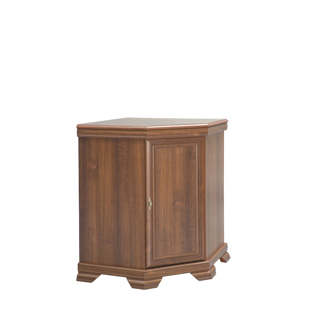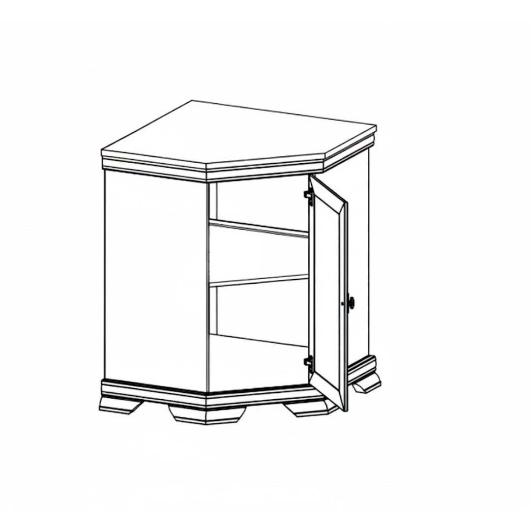 Díky svému rohovému provedení šetří místo a zároveň nabízí překvapivý úložný prostor pro vaše cennosti, dokumenty nebo drobnosti. Skříňka disponuje vnitřní policí pro přehledné uspořádání věcí a praktickými panty pro snadné otevírání. Stojí na pevných, ozdobně vyřezávaných nožkách, které zajišťují stabilitu a podtrhují historický charakter nábytku.