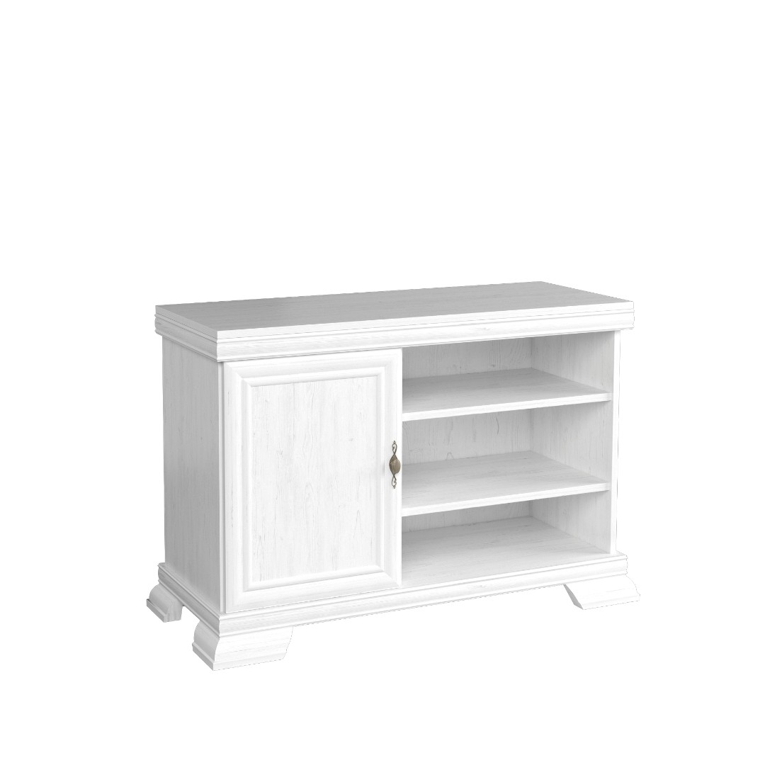 Vytvořte si v obývacím pokoji místo, kde se snoubí tradice s pohodlím. Televizní stolek KOBE KRT je navržen pro ty, kteří dávají přednost klasickým liniím. Díky svému elegantnímu provedení vdechne vašemu interiéru nostalgické kouzlo a stane se vkusným základem pro vaši televizi. Na první pohled zaujme svým provedením, jemuž dominují bohatě frézované detaily na dvířkách a výrazné ozdobné lišty v horní i spodní části. Celkový vzhled doplňuje stylové kování v barvě patinovaného zlata, které stolku dodává punc luxusu a podtrhuje jeho tradiční charakter...