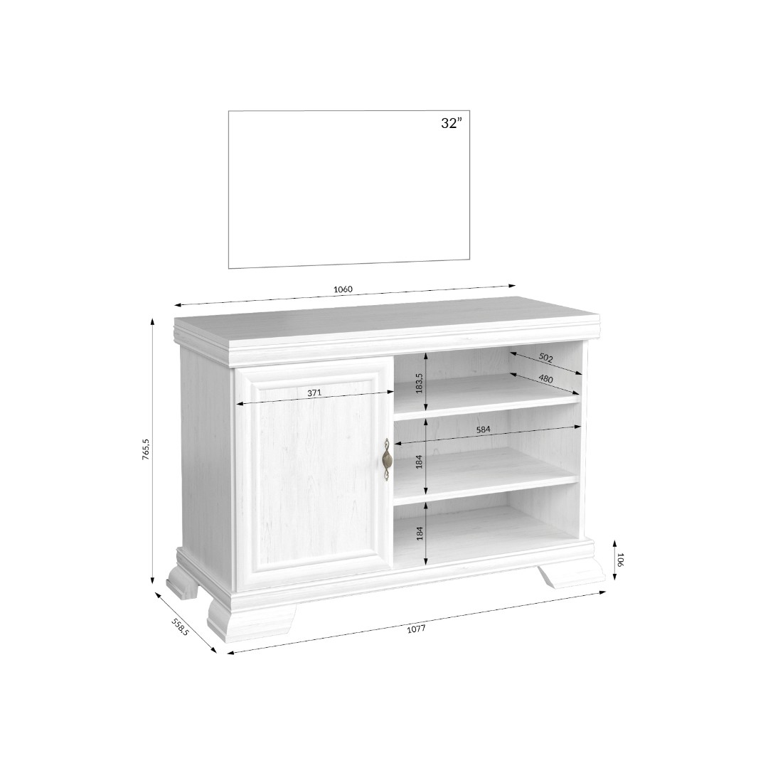 Vyrobeno z lamina v barevném provedení borovice bílá andersen. Pravá část stolku je rozdělena dvěma policemi, které vytvářejí ideální prostor pro umístění multimediálního zařízení, herní konzole nebo dekorace. Je tak zajištěn snadný přístup k veškeré elektronice. Levá strana naopak nabízí prostornou uzavřenou skříňku pro diskrétní uložení drobností, které mají zůstat skryty.