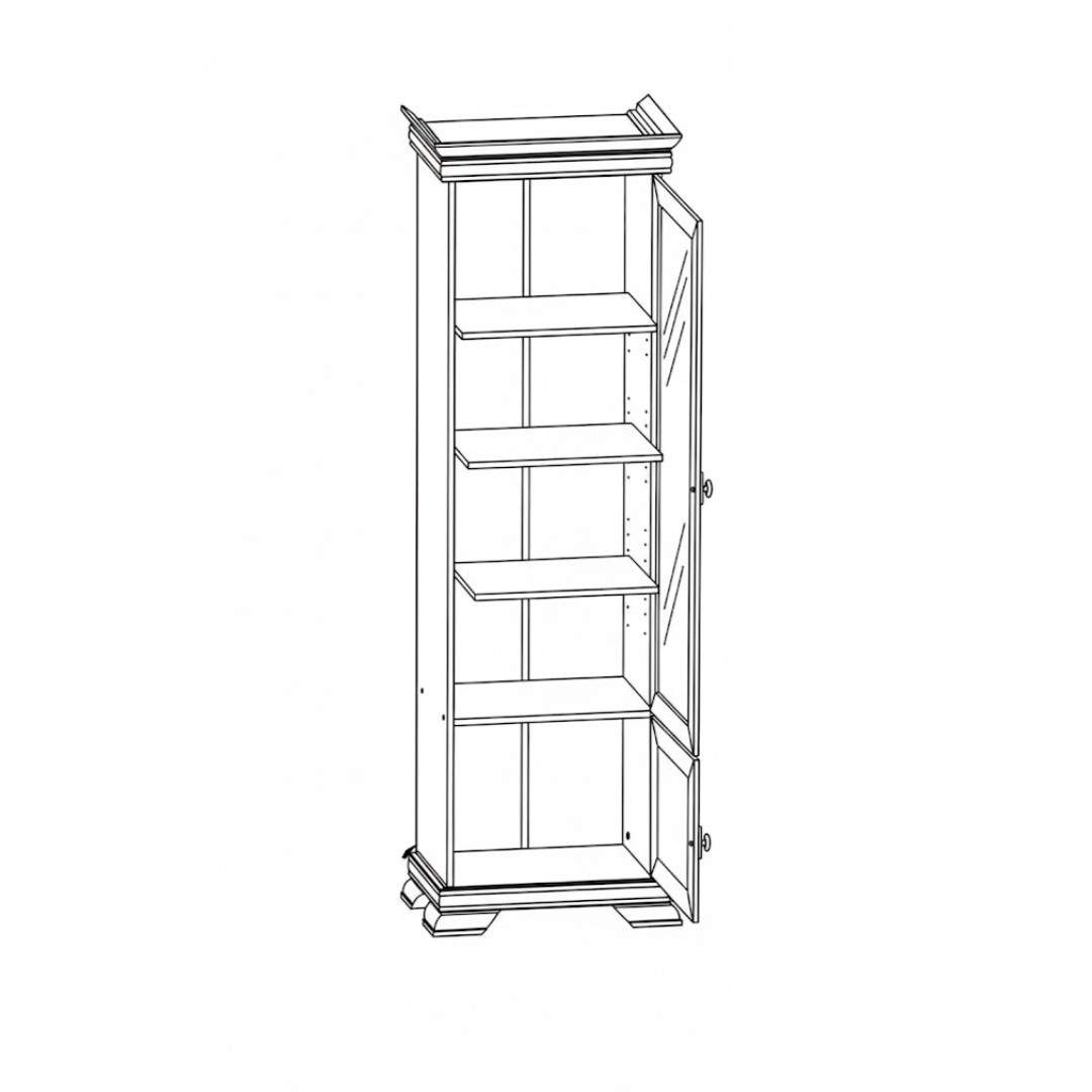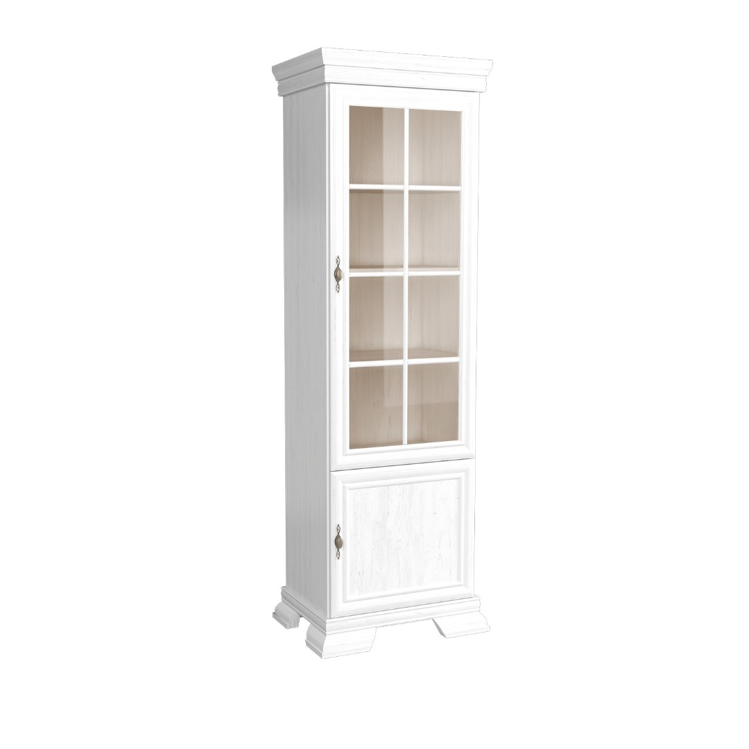 Horní dvířka mají prosklenou část s elegantním členěním a čirým sklem, které chrání vaše předměty před prachem, zatímco je udržují stále na očích. Vnitřní prostor je rozdělen třemi policemi, které poskytují dostatek místa pro přehledné uspořádání věcí. Spodní plná dvířka ukrývají prostor pro věci, které mají zůstat skryty, čímž pomáhají udržovat v místnosti pořádek. Barevné provedení je v tónu borovice bílá andersen.
