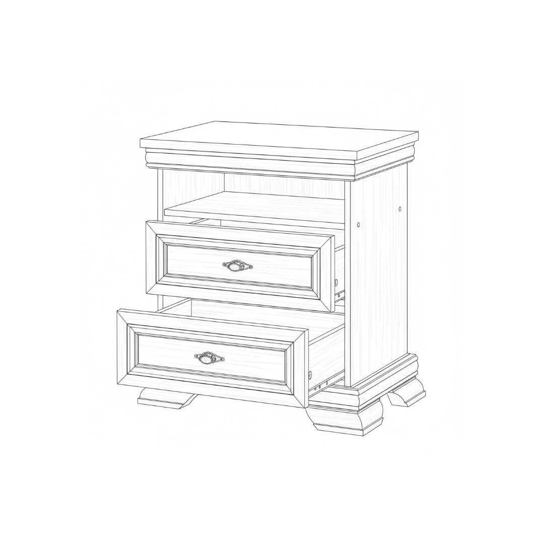 Dodejte své ložnici nádech noblesy s nočním stolkem KOBE KSN. Tento kousek v jemném dekoru borovice bílá andersen je oslavou klasického designu, který podtrhují ozdobné lišty a stylové úchytky. Nabízí dokonalou rovnováhu mezi estetikou a funkcí – dvě zásuvky diskrétně skryjí vaše cennosti, zatímco otevřená police je jako stvořená pro vaši oblíbenou knihu. Vytvořte si u lůžka oázu klidu, která vás bude provázet každou noc...
