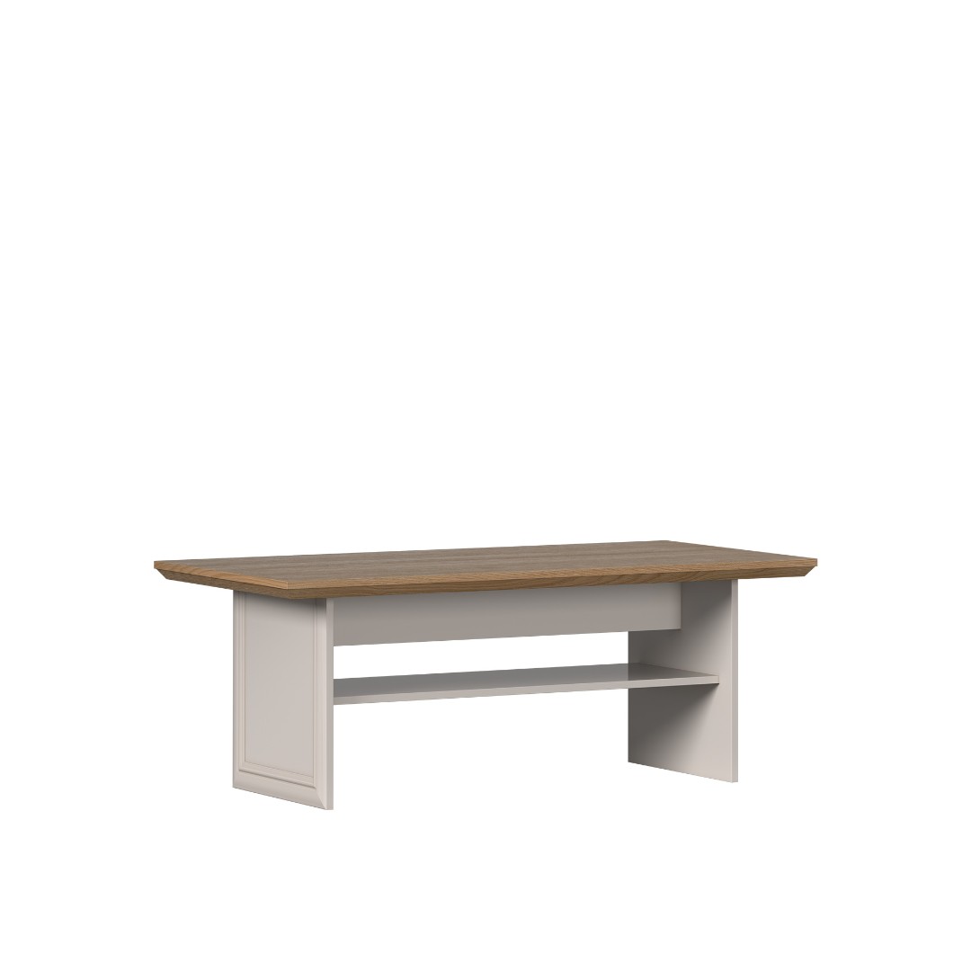Vyrobeno z lamina v barevném provedení kašmír/dub mauvella. Pod vrchní deskou se nachází odkládací police ideální pro odložení novin nebo TV ovladače, čímž pomáhá udržovat horní desku vždy uklizenou a připravenou pro odložení šálku lahodné kávy. Konferenční stolek KOBE NEW představuje ideální volbu pro ty, kteří hledají nábytek s duší, jenž v sobě spojuje historizující půvab s každodenní užitnou hodnotou.