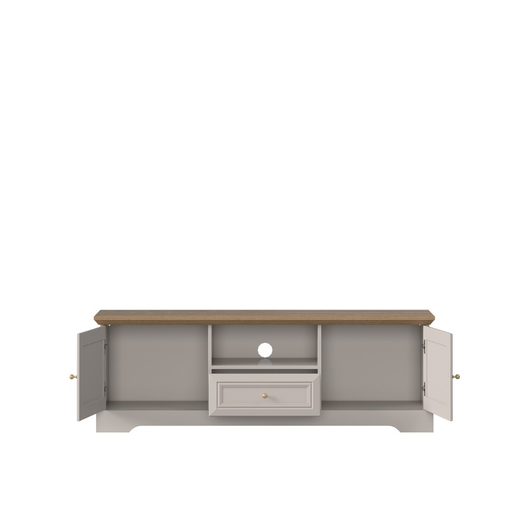 Televizní stolek KOBE NEW v klasickém stylu je perfektním řešením pro umístění televize v interiéru, kde hraje prim tradice. Nabízí dostatečnou pevnost a prostor pro všechna zařízení, a přitom si zachovává vizuální lehkost a noblesu historického nábytku. Barevné provedení je v kombinaci tónů kašmír/dub mauvella...