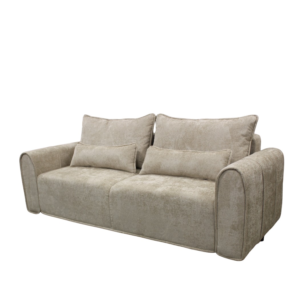 Smetanová látka KIARA působí luxusně a snadno ji zkombinujete s jakýmikoliv doplňky. Díky opěrným a dekorativním polštářů si hloubku sedu upravíte přesně podle svých potřeb – od hlubokého relaxu až po vzpřímenější sezení. Navíc, během okamžiku proměníte pohovku v prostorné lůžko o rozměrech 150 x 191 cm, které hravě nahradí postel pro hosty.