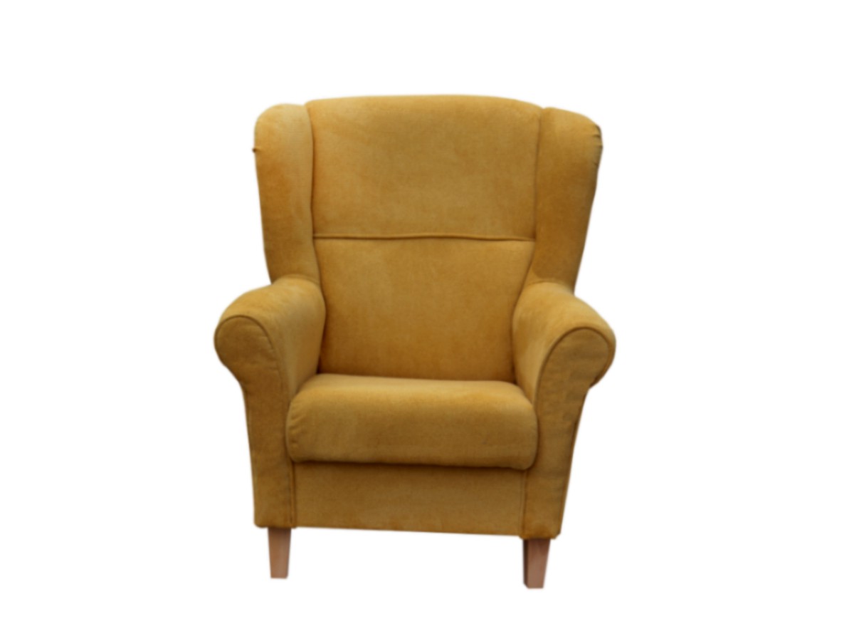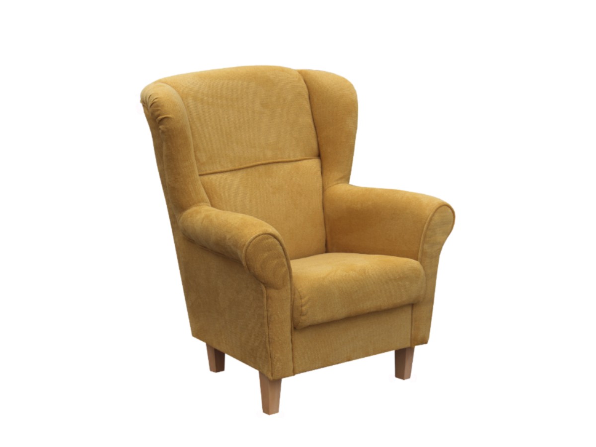 Křeslo KRISTIÁN je potaženo látkou v hořčicové barvě - Brooklyn mostaza (viditelná vazba točených nití - hebká na dotek). V nabídce také další barvy - viz barevné varianty. K pohodlnosti přispěje vysoký opěrák a mohutné područky, jež dotvářejí celkový design. Nožky jsou dřevěné - barva buk.