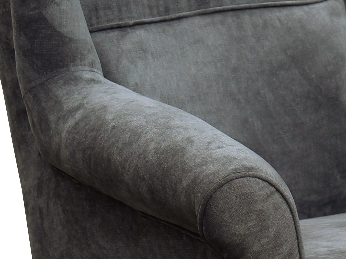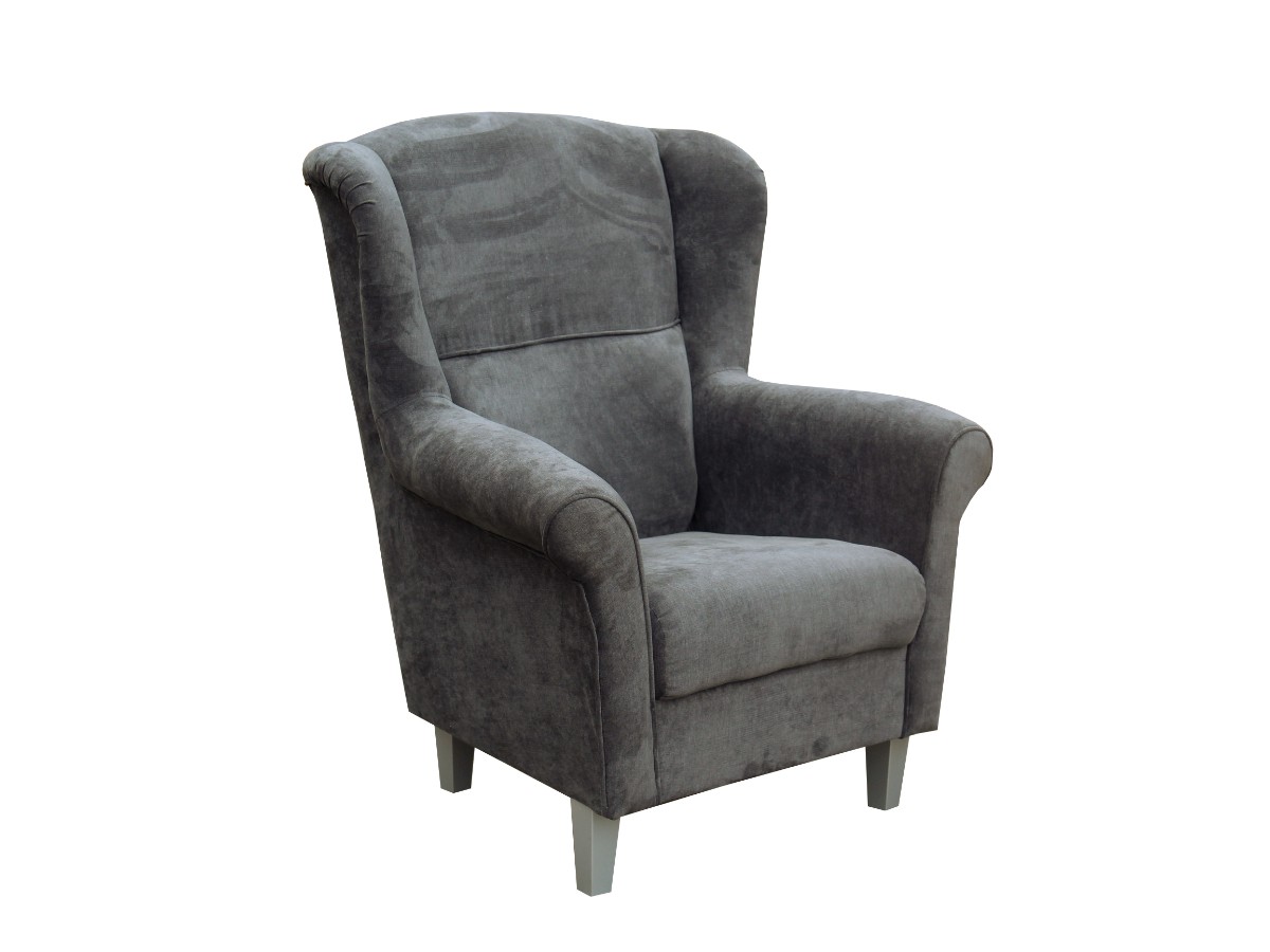 Křeslo KRISTIÁN je potaženo látkou v tmavě šedé barvě - Orinoco 96 (měkká a příjemná látka na dotek a zároveň odolná a velmi pevná). V nabídce také další barvy - viz barevné varianty. K pohodlnosti přispěje vysoký opěrák a mohutné područky, jež dotvářejí celkový design. Nožky jsou dřevěné - stříbrné barvy.