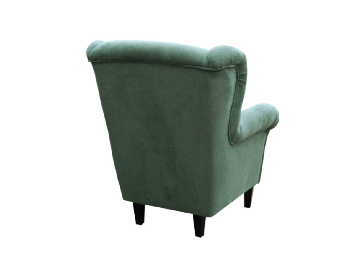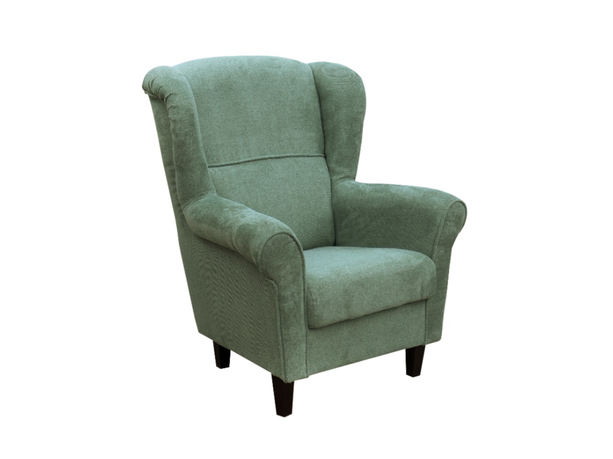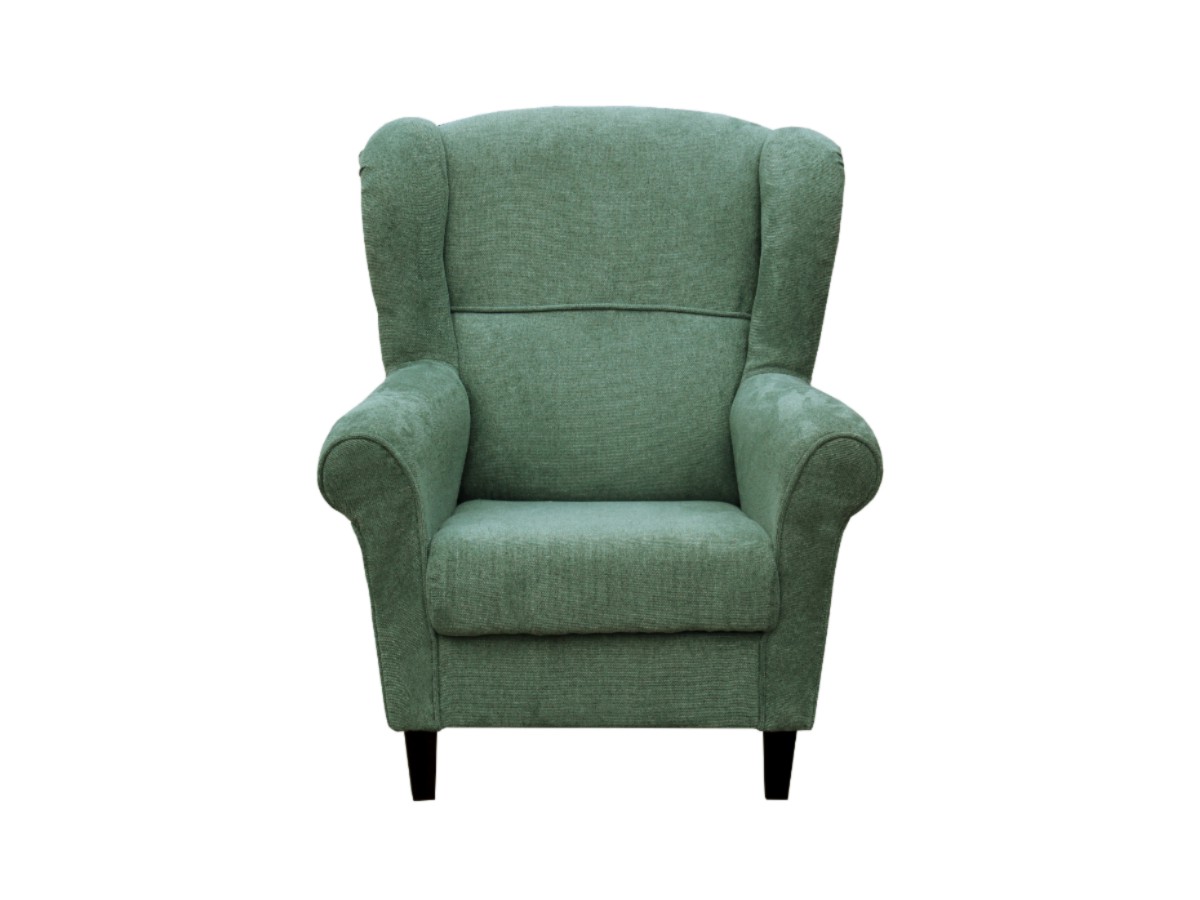 Křeslo KRISTIÁN je potaženo látkou v zelené barvě - Brooklyn bottle (viditelná vazba točených nití - hebká na dotek). V nabídce také další barvy - viz barevné varianty. K pohodlnosti přispěje vysoký opěrák a mohutné područky, jež dotvářejí celkový design. Nožky jsou dřevěné - barva ořech tmavý.
