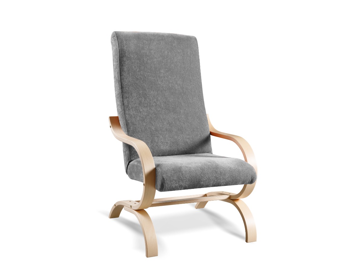 Vysoký opěrák a područky poskytují stabilní podpěru při sezení. Konstrukce křesla je vyrobena z ohýbaného dřeva, moření bukové. Křeslo je pohupovací.
