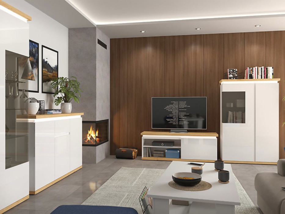 Pod hranou nábytku nesmí chybět LED osvětlení, které je typickou součástí kolekce LAVAL. Dokoupit zvlášť pak můžete LED osvětlení skleněných polic, které krásně prosvětlí vystavené předměty uvnitř nábytku.