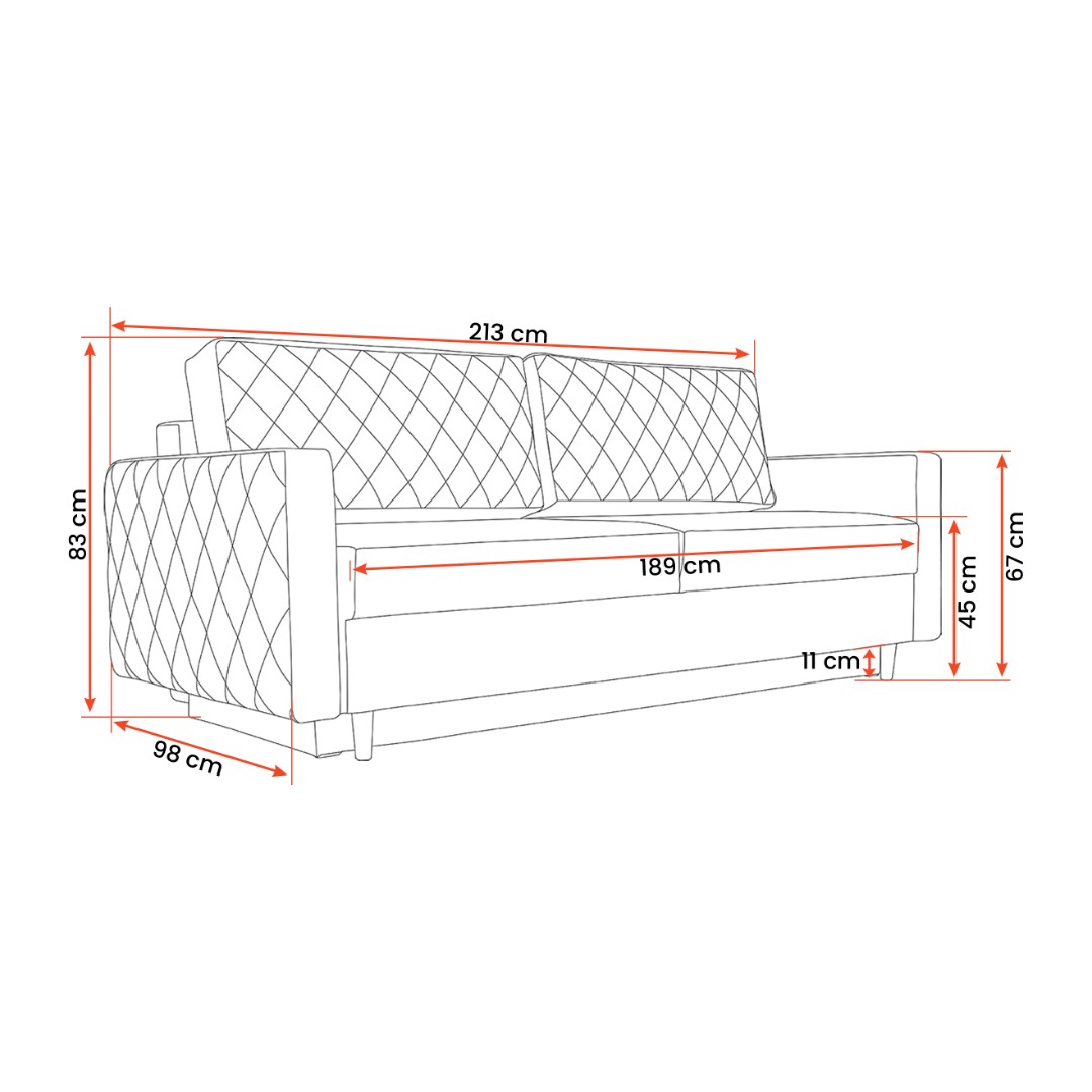 Nabízí rozklad typu DL, snadno tak pohovku přeměníte na pohodlné lůžko pro vaše hosty. Velikost spací plochy je o rozměrech 152 x 190 cm. V pohovce naleznete také úložný prostor pro uschování lůžkovin. Nožky jsou vyrobeny z bukového dřeva, které dodávají pohovce LENA pevnost a přírodní kouzlo. Jejich výška je 10 cm, jsou tedy dostatečně stabilní. Výplň je zajištěna vysoce-elastickou PUR pěnou a bonellovou pružinou. Poskytuje tak optimální oporu a pohodlí pro každodenní spaní. Opěrné polštáře jsou vyplněny silikonem. Měkké područky a polštáře zvyšují komfort používání.