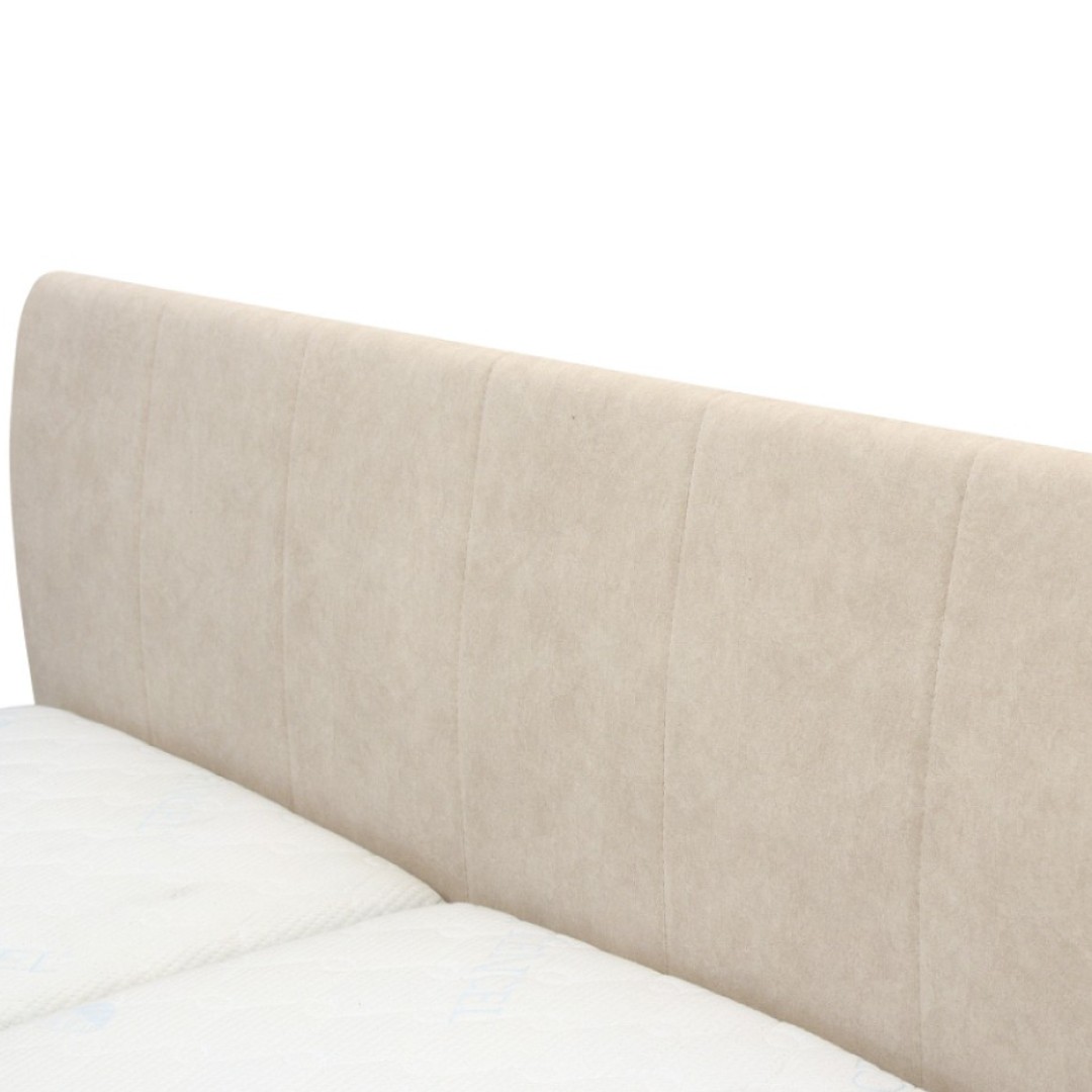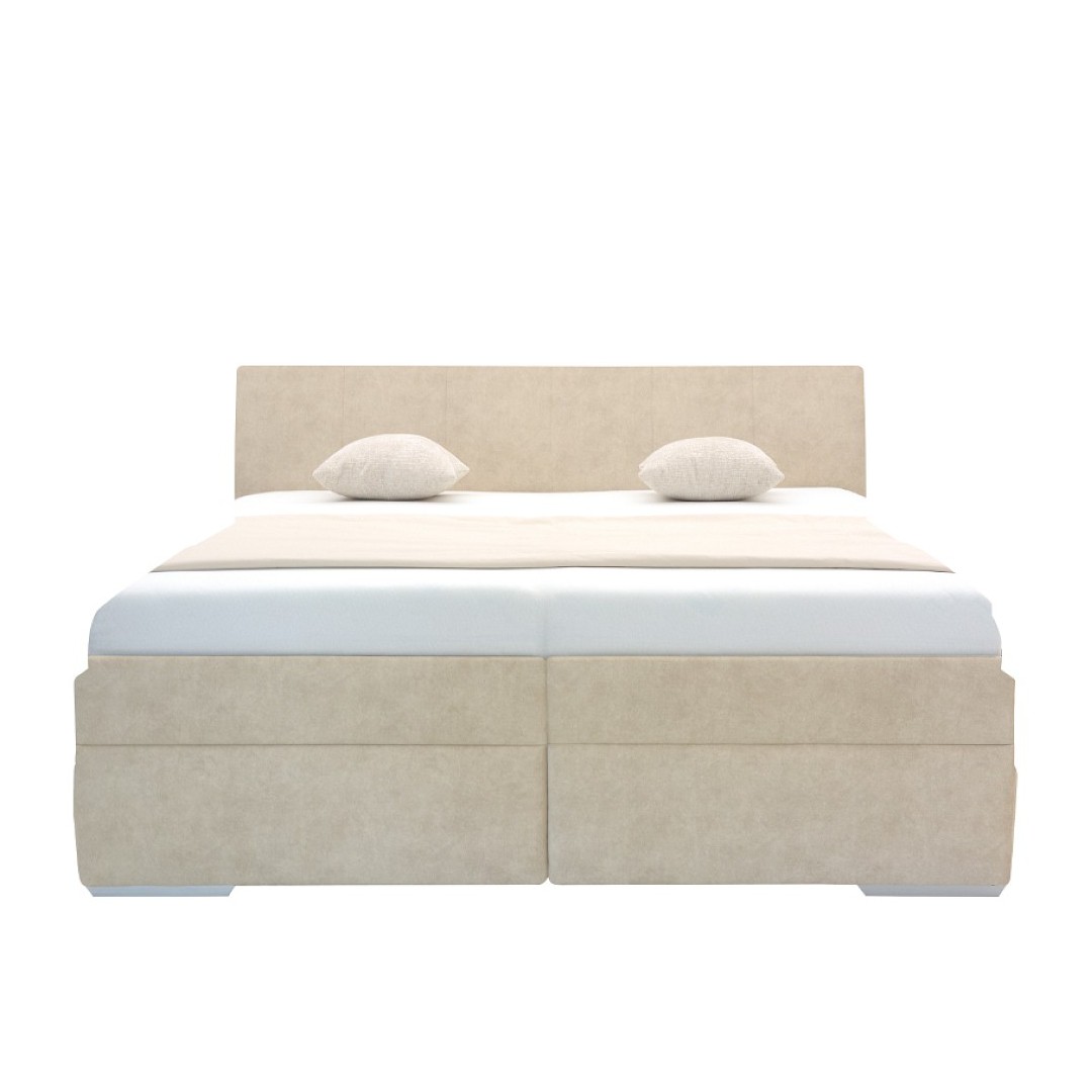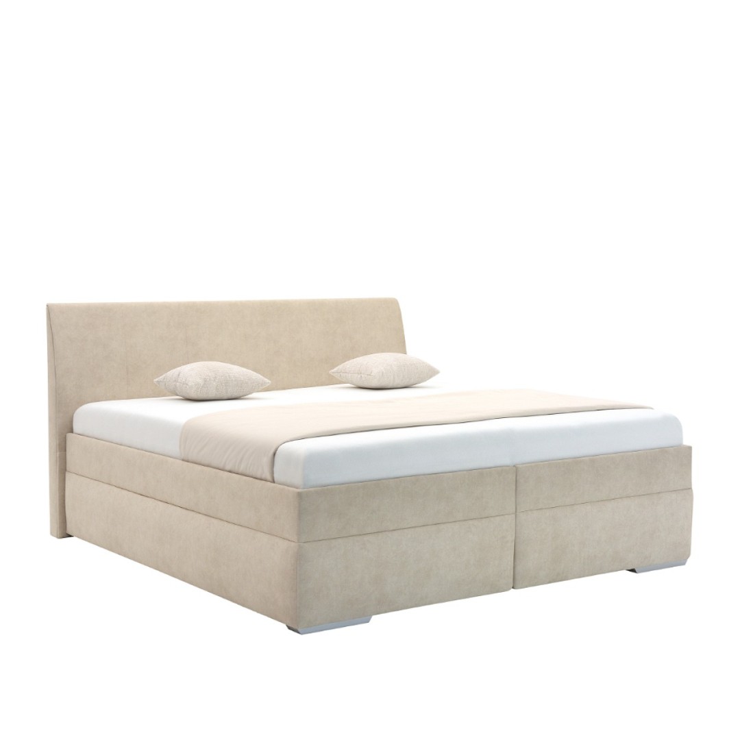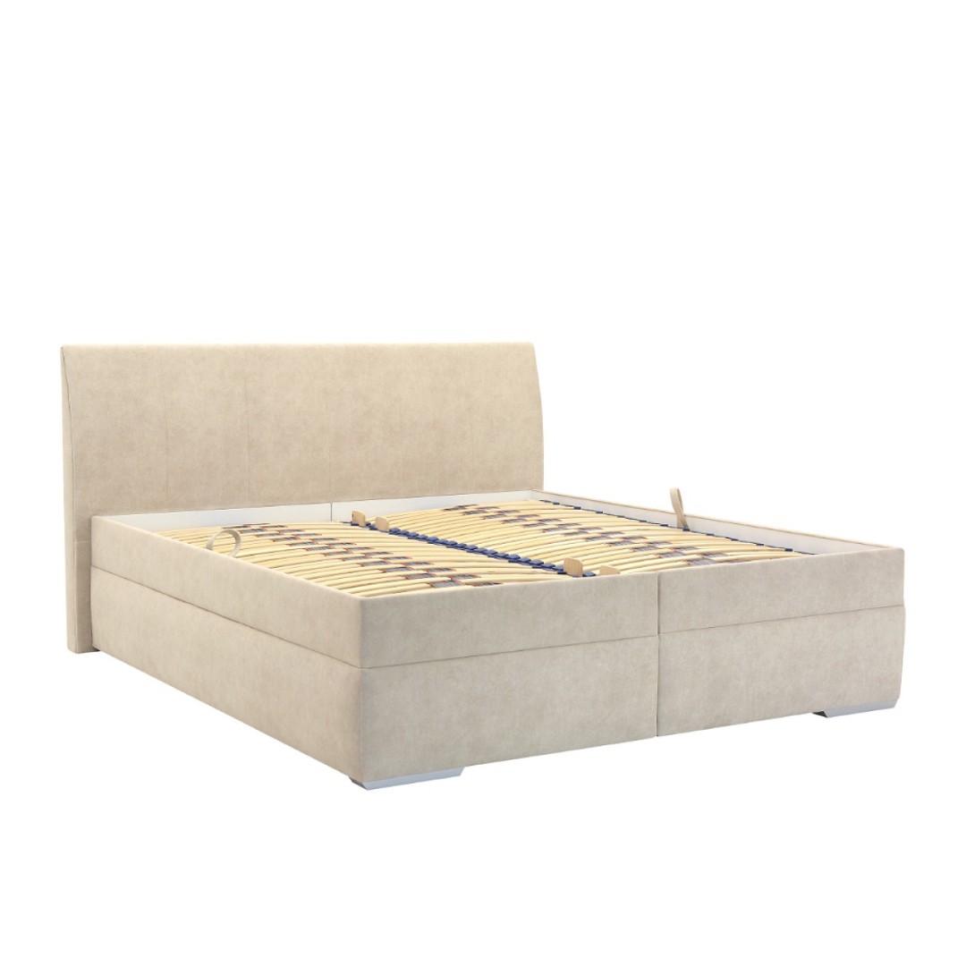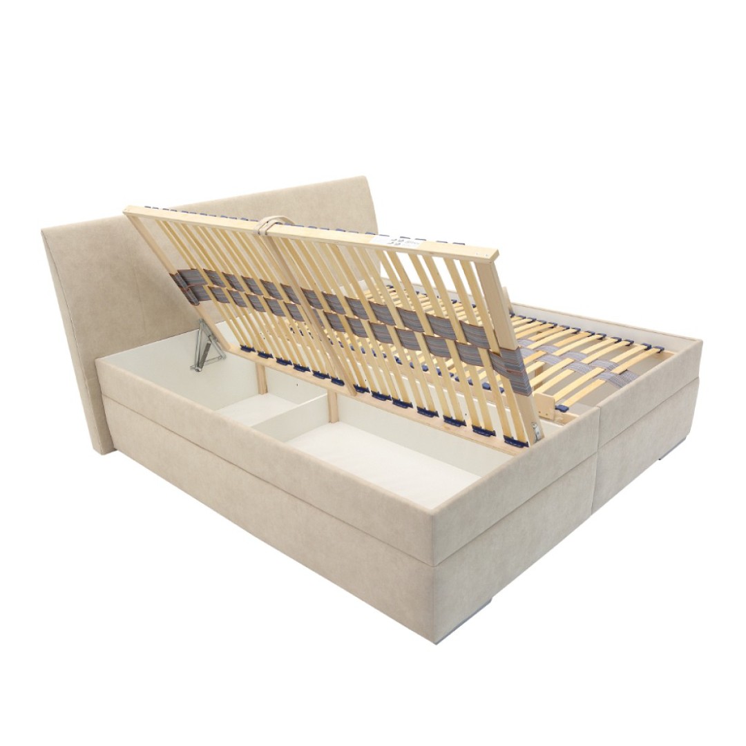 Potah je z vysoce kvalitní potahové látky v elegantním světlém provedení - odstín bílá káva CD04. Látka je typu Easy Clean - snadno se čistí. Součástí je vysoké čelo postele dosahující výšky 107 cm. Čelo postele je decentně prošito což zvyšuje luxusní vzhled. Poskytuje oporu zad při čtení, nebo sledování vašeho oblíbeného televizního pořadu. Výška lehu je 48 cm zajišťující snadný přístup k lůžku. V ceně jsou lamelové rošty . Pružinový mechanismus zajistí, že se rošty jednoduše vyzvednou a tak bude moci kdykoliv do úložného prostoru uschovat různé maličkosti. Tento prostor je ideální pro uskladnění lůžkovin, sezónního oblečení nebo jiných potřebných věcí, čímž pomáhá udržet ložnici stále uklizenou. Úložný prostor je extra hluboký. Rošty se vyklápějí z boku postele.