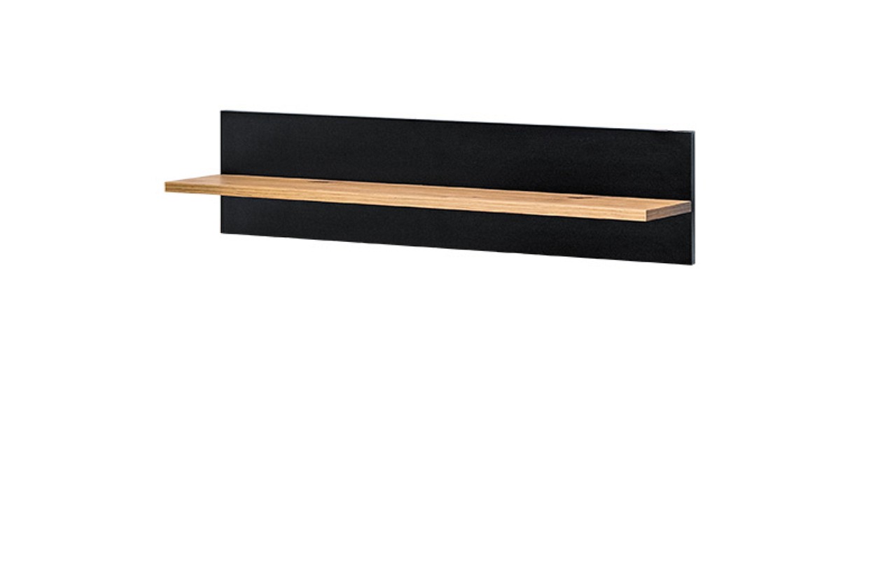 Materiál použitý při výrobě - lamino. Police je s černou dekorační lištou. Barevné provedení je v kombinaci tónů dub artisan/černá.