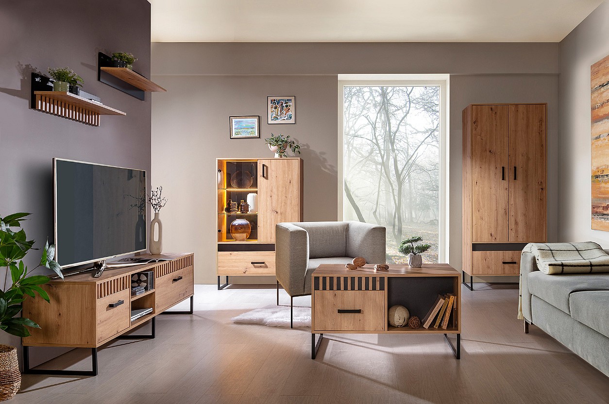 Nábytek LINCOLN je moderní sestavou pro vytvoření industriálního domova. Nabízí jednotlivé prvky pro plnohodnotné vytvoření obývacího pokoje, nebo pracovny.