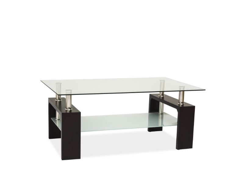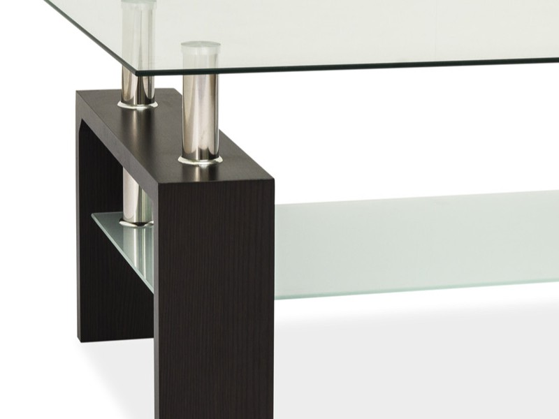 Stolek LISA BASIC II nabízí praktické místo pro odkládání věcí denní potřeby. Díky polici pod vrchní deskou má TV ovladač vždy své místo. Vrchní deska je vyrobena z čirého, tvrzeného skla. Nožky jsou z MDF barvy wenge. Komponenty jsou chromované.