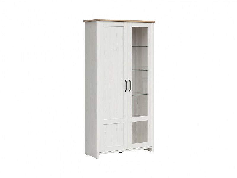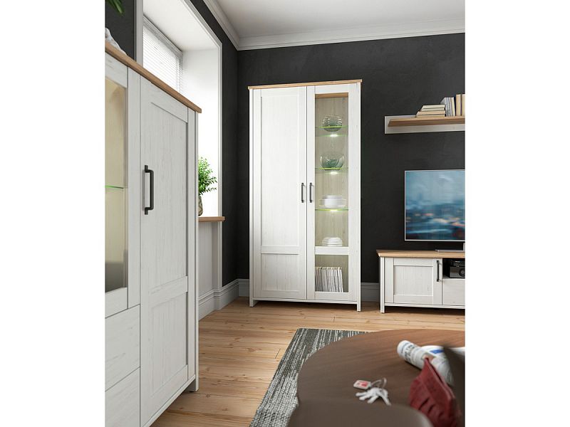 Máte rádi jednoduchý příjemný design a hodila by se vám praktická vitrína? Potom je tu pro vás vitrína Loksa v pěkném barevném provedení borovice bílá anderson a dub grandson...