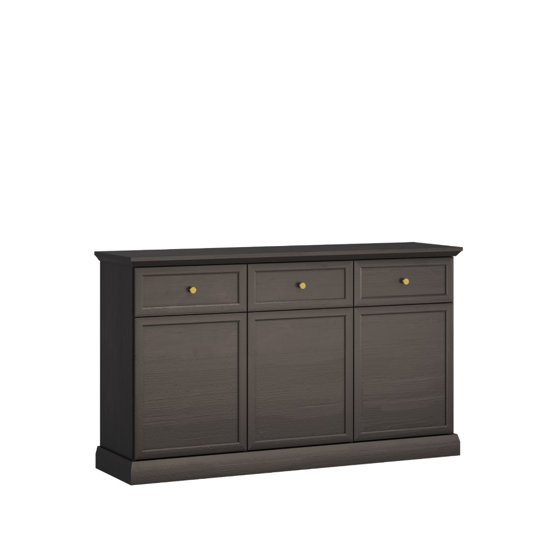 Praktická a elegantní komoda LUCEMBURK K3D3S nabízí promyšlené členění pro maximální využití prostoru. Horní část tvoří prostorné zásuvky ideální pro uschování menších předmětů, zatímco spodní uzavřená část s dvířky poskytuje bezpečné a skryté místo pro uschování větších předmětů. Dvířka mají zároveň push to open systém otevírání, šuplíky mají kovovou úchytku zlaté barvy. Kombinace funkčnosti a nadčasového designu se snadno hodí do obývacího pokoje, ložnice či pracovny...