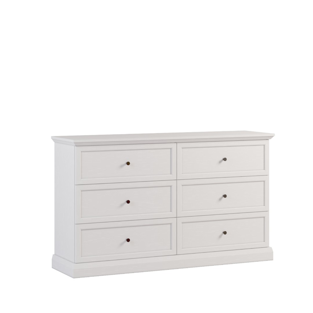 Komoda LUCEMBURK K6S nabízí šest prostorných zásuvek, které jsou pevně usazené na soklu a poskytují dostatek místa pro přehledné uložení všech vašich věcí. Komodu doplňují elegantní kovové úchytky v černé barvě a velkorysá horní deska, kterou lze využít pro dekorace či praktické předměty...
