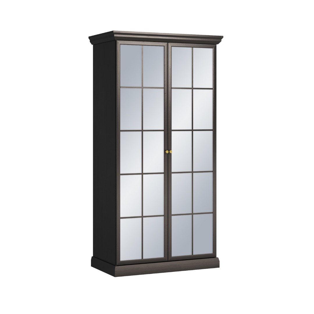 Elegantní šatní skříň LUCEMBURK S2DL se zrcadlovými dvířky, která dokáže místnost opticky zvětšit a prosvětlit, nabízí uvnitř dvě praktické police a šatní tyč. Výrazné stylové sokly a kovové úchyty v luxusní zlaté úpravě podtrhují její unikátní charakter. Grafitový povrch s výraznou přírodní kresbou dřeva dodává skříni osobitý a dynamický vzhled, který nádherně zvýrazňuje její celkový design. ..