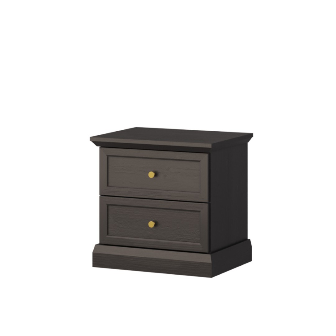Dodejte své ložnici nádech elegance a moderního stylu s nočním stolkem LUCEMBURK SN v atraktivním grafitovém provedení. Tento designový kousek zaujme nejen svým vzhledem, ale také praktičností, kterou oceníte každý den. Stolek je vybaven dvěma prostornými šuplíky, do kterých snadno uložíte všechny nezbytnosti – od knih a brýlí až po kosmetiku či drobnosti, které chcete mít po ruce. Kovové úchytky ve zlaté barvě dodávají nábytku luxusní nádech a krásně kontrastují s tmavým dekorem...