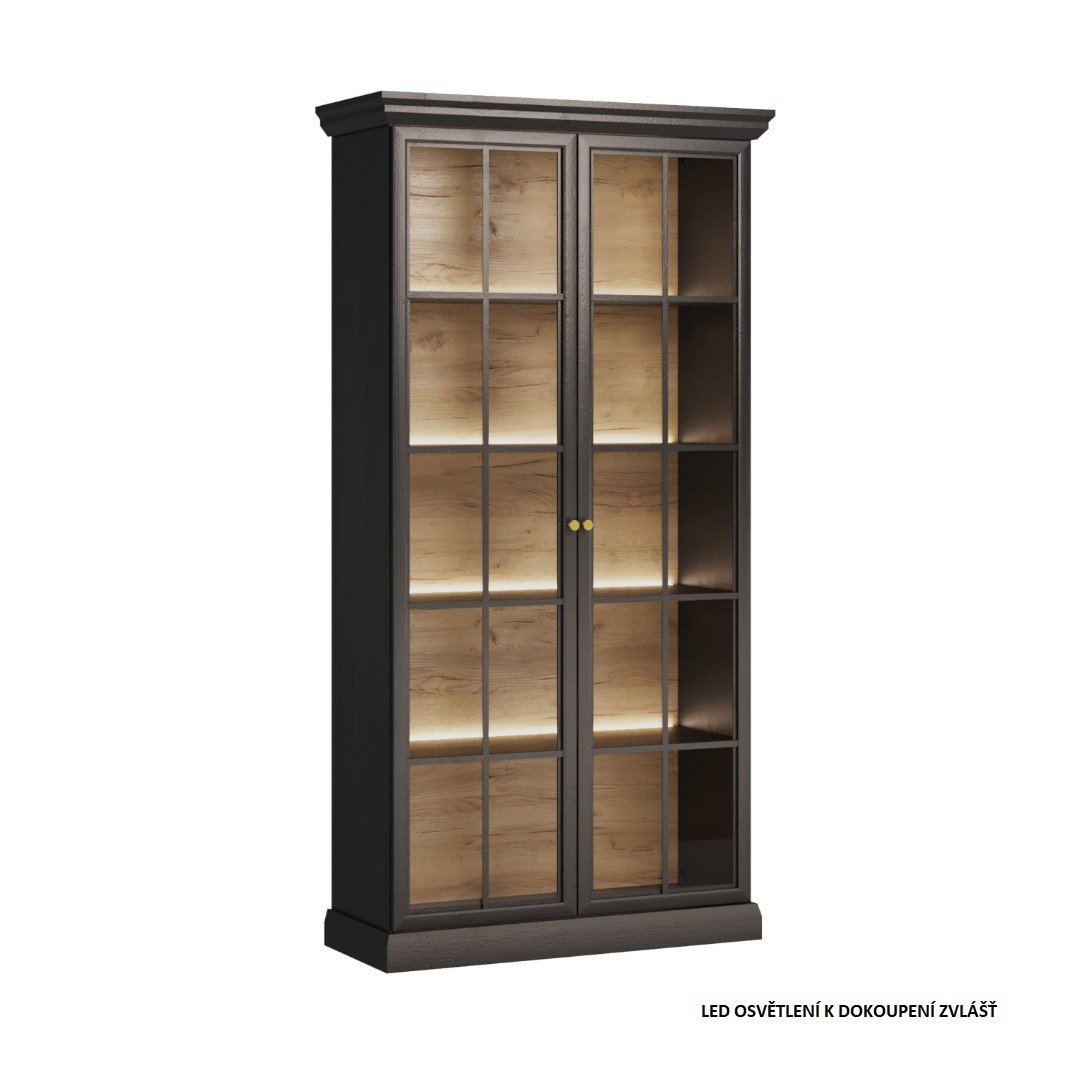 Široká vitrína LUCEMBURK W2D s policemi ukrytými za elegantními prosklenými dvířky nabízí stylový prostor pro vystavení dekorací i uložení oblíbených předmětů. Výrazné stylové sokly a kovové úchyty v luxusní zlaté úpravě podtrhují její unikátní charakter. Dvířka jsou prosklená s dekoračními lištami. Možné dokoupit zvlášť LED osvětlení viz související zboží...