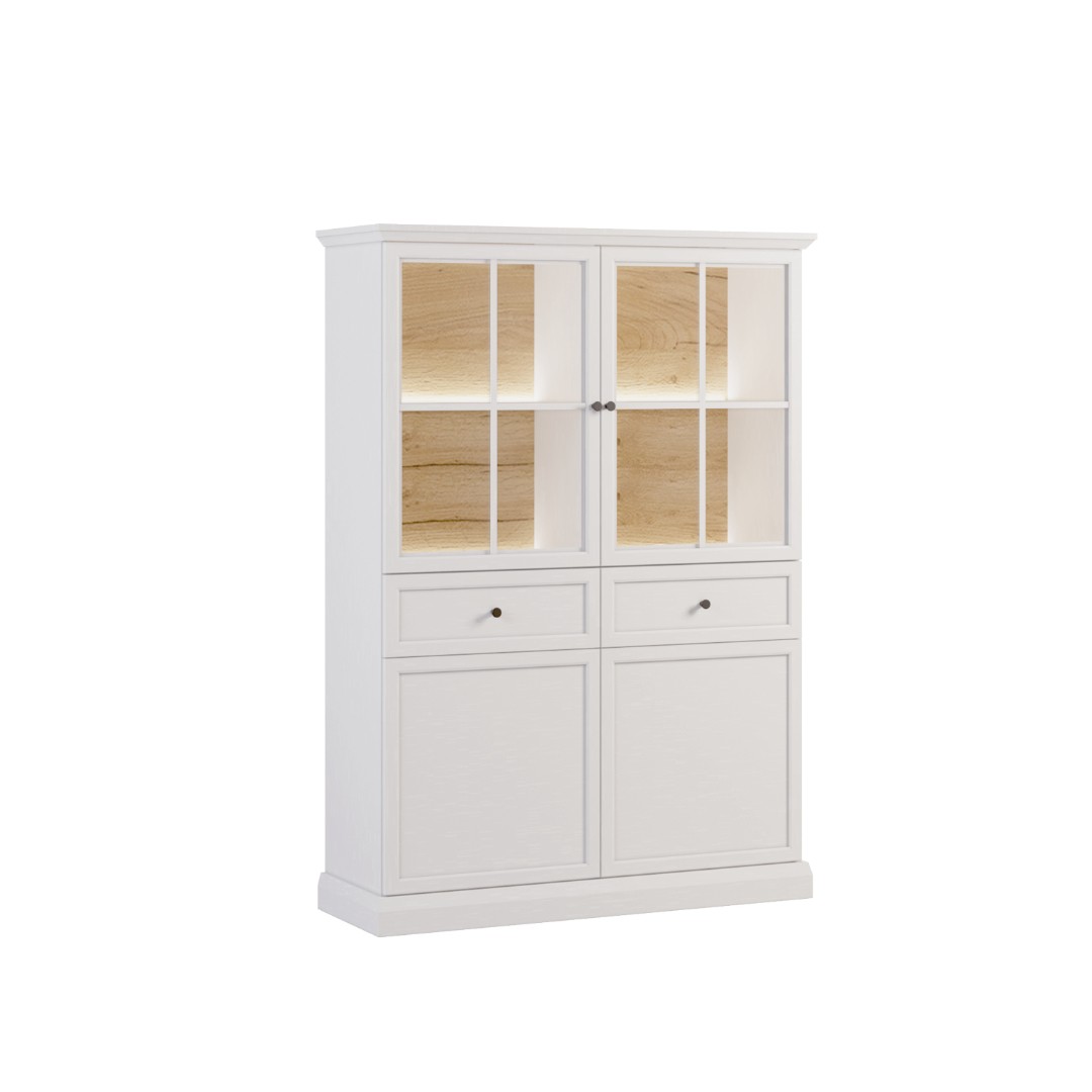 Nízká vitrína LUCEMBURK W4D2S kombinuje atraktivní design s praktickým úložným prostorem. Horní část s prosklenými dvířky ukrývá police vhodné pro prezentaci dekorací, zatímco střední šuplíky slouží k uložení drobností. Spodní skříňky s policemi pak poskytují diskrétní prostor pro věci, které chcete mít po ruce, ale ne na očích. Osvětlení není v ceně, možné dokoupit zvlášť - LED osvětlení zvlášť viz související zboží...