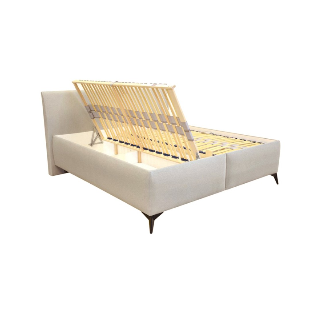 Součástí manželské postele jsou výklopné rošty na pneumatickém mechanismu. Po jejich zvednutí se pohodlně dostanete k úložnému prostoru, do kterého uschováte veškeré lůžkoviny. Úložný prostor je extra hluboký. Nechybí ani taštičková bennelová matrace Fines. Její nosnost je 130 Kg. Jde o vysoce prodyšnou matraci jež zabraňuje množení bakterií. Tuhost - středně tvrdá.