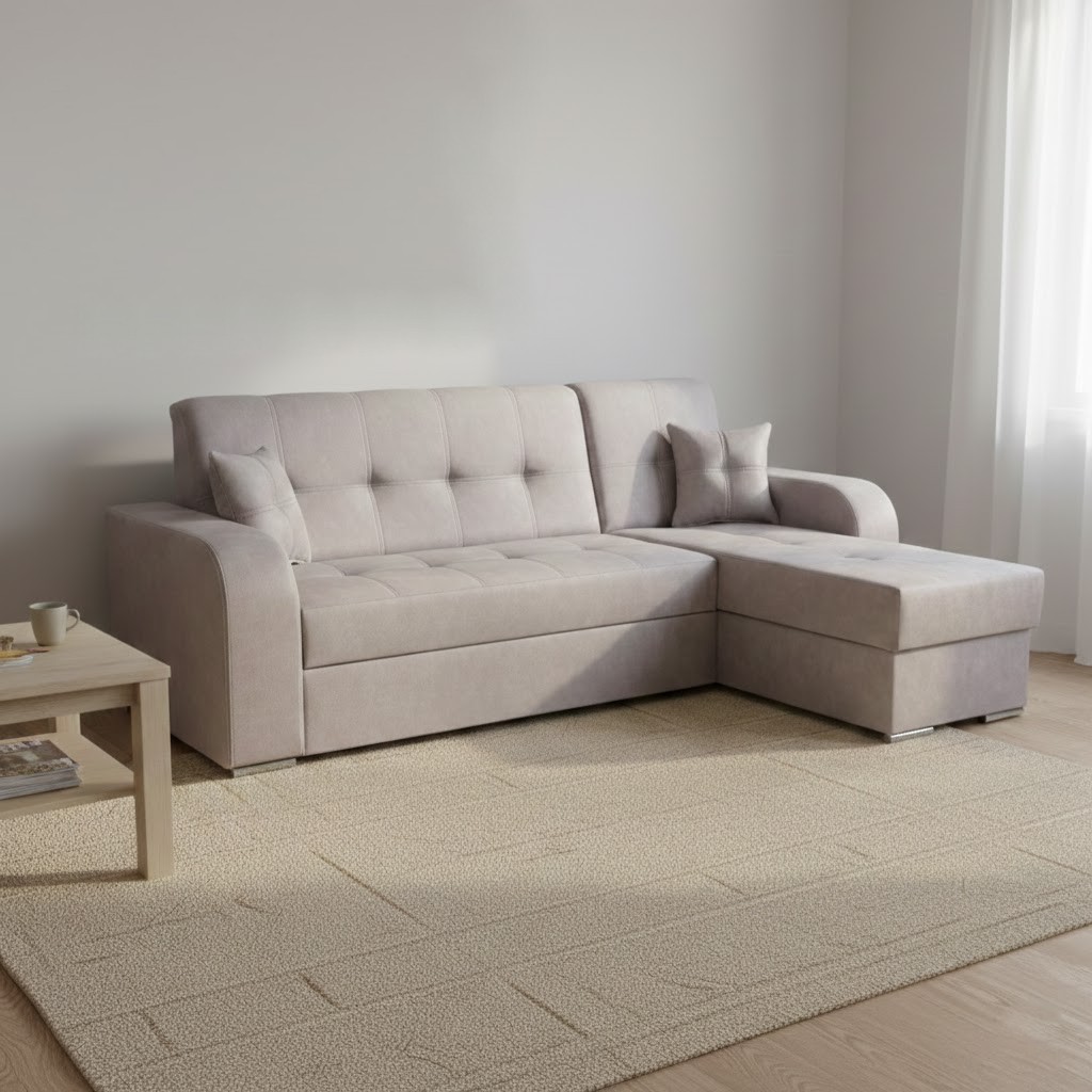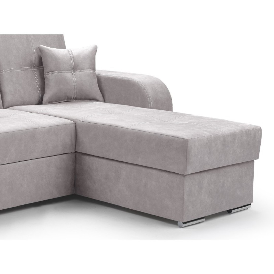 Sedací souprava MARAJO je vyrobena v levém rohovém provedení z pozice sedícího. Potažena je světle šedou potahovou látkou Queens 21 s prošitím. Největší výhodou této látky je snadné čištění. Pomocí vody (bez jakýchkoliv přísad) snadno odstraníte skvrny od čokolády, kávy, vína, inkoustu atd.