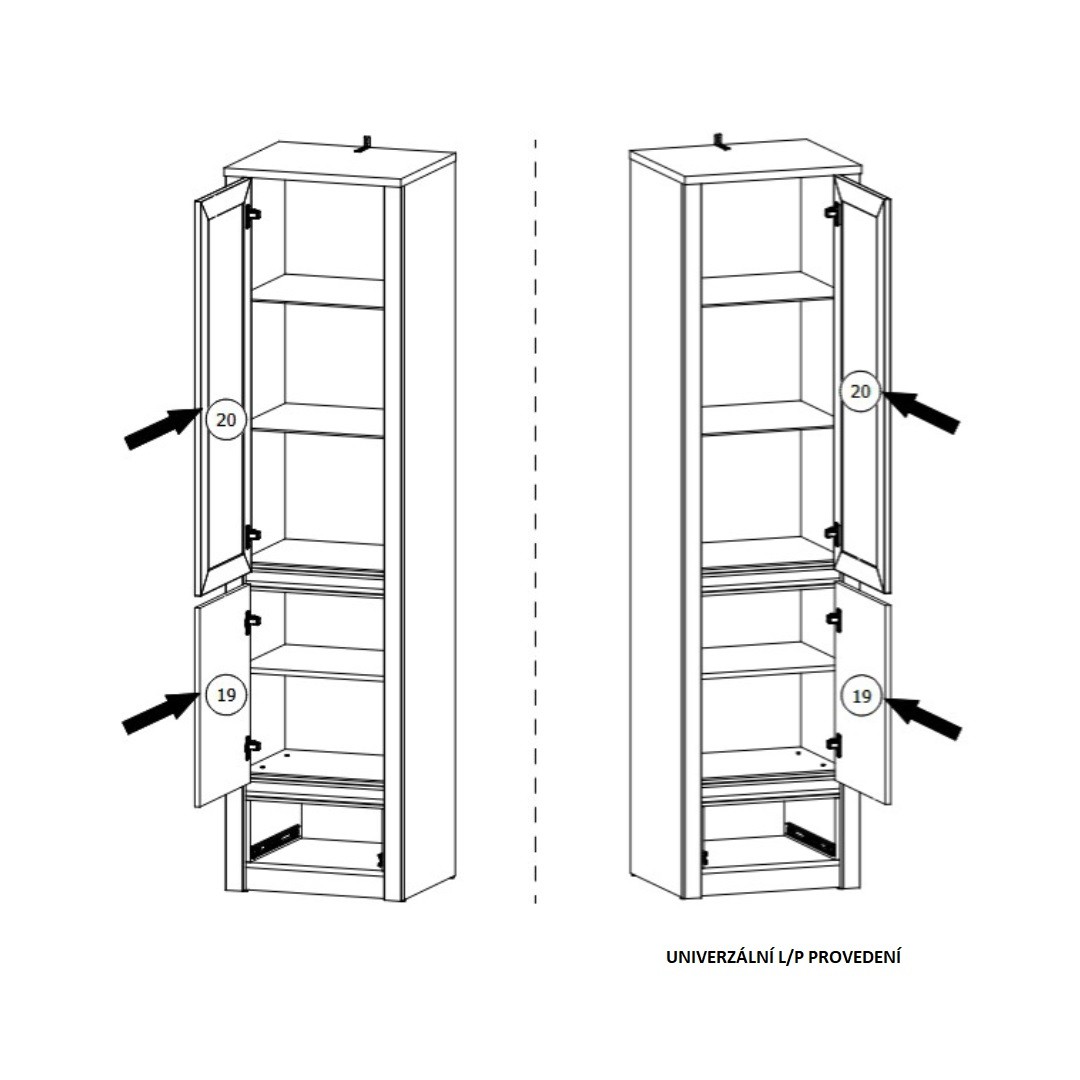 Doručujeme v demontu s návodem na sestavení. Před první montáží je vitrína univerzální, tzn. můžete upevnit dvířka s otevíráním vlevo/vpravo.