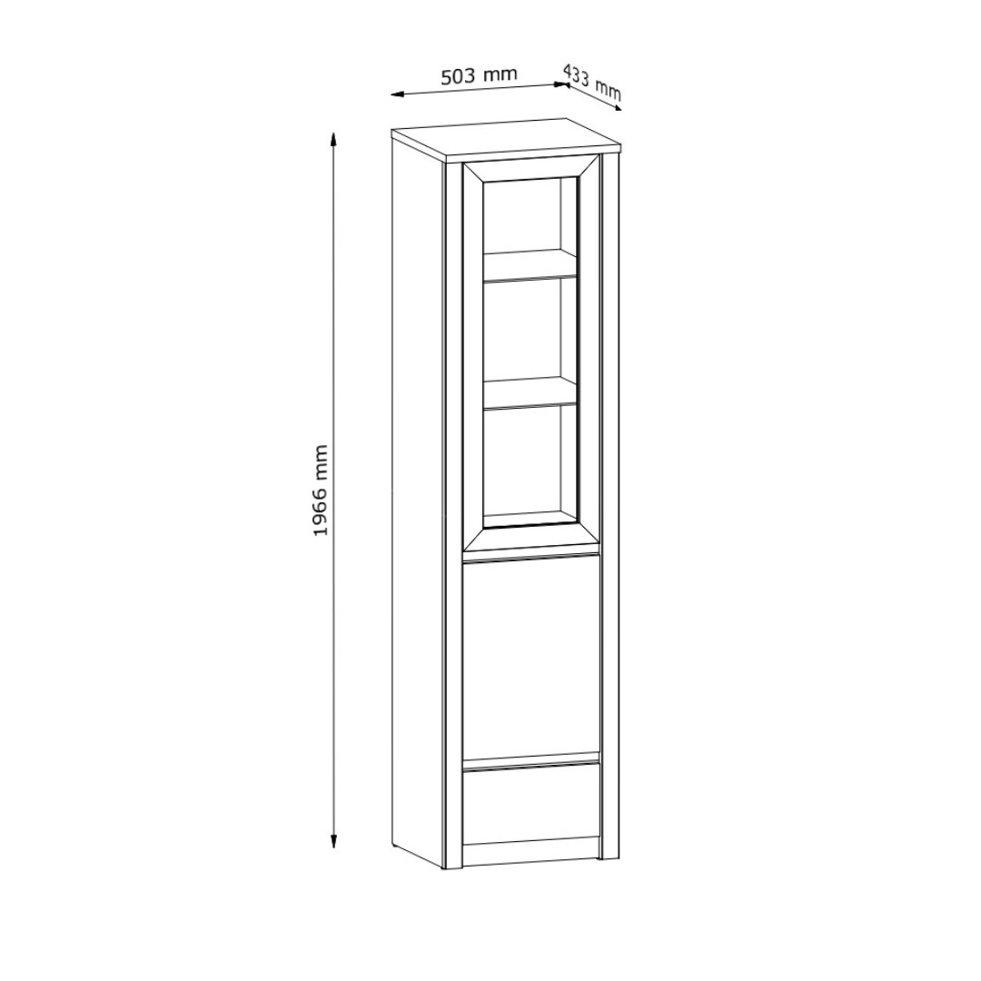 Vysoká úzká vitrína MARVELLA W1D je kombinací elegance a funkčnosti, která se stane ozdobou každého interiéru. Vrchní část vitríny tvoří prosklené police a dvířka, ideální pro vystavení dekorací, sklenic nebo sběratelských předmětů. Pro dokonalý efekt a příjemnou atmosféru lze tuto část doplnit LED osvětlením (k dispozici samostatně)...