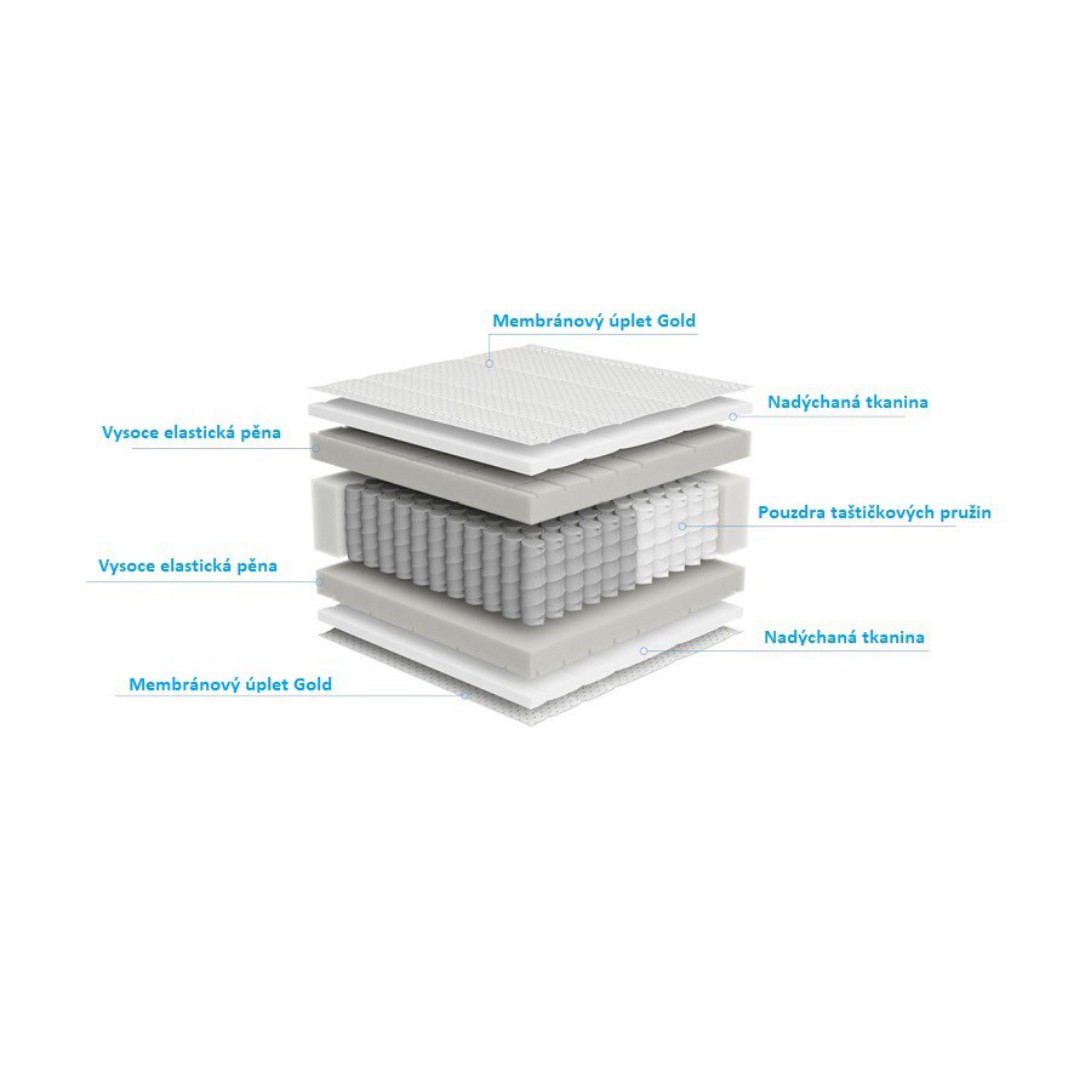 Taštičkové pružiny reagují samostatně na tlak vytvářený tělem. Zajišťují skvělou bodovou podporu těla a tím i dokonale přizpůsobení v každé poloze při spánku.