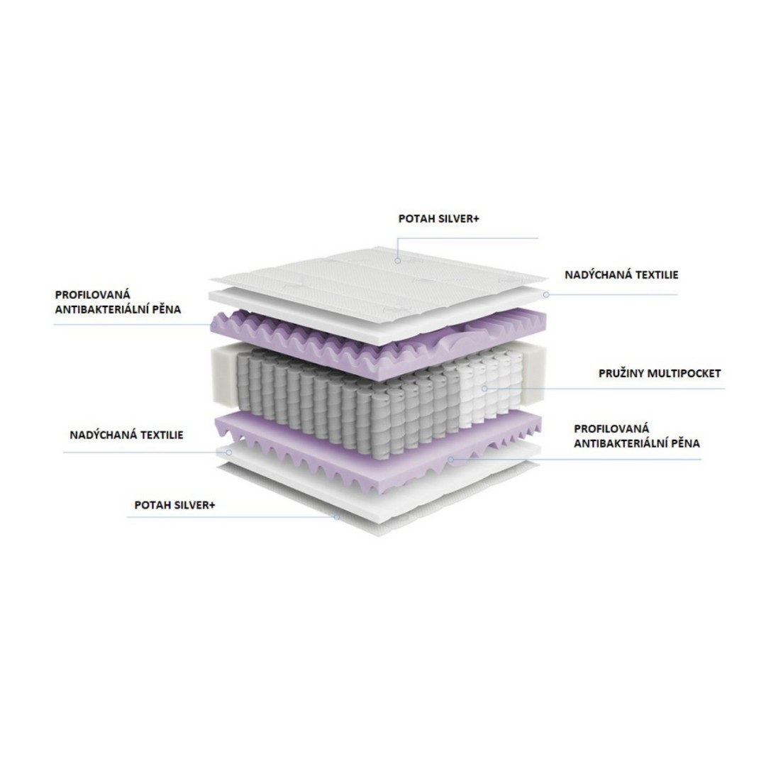 Potah Silver+ s ionty stříbra je pratelný do 60°C, ionty stříbra mají antistatické, antibakteriální schopnosti - zabraňují růstu bakterií, plísní a hub, minimalizují pachy. Potah má po všech čtyřech stranách zip pro jeho snadnější sejmutí.