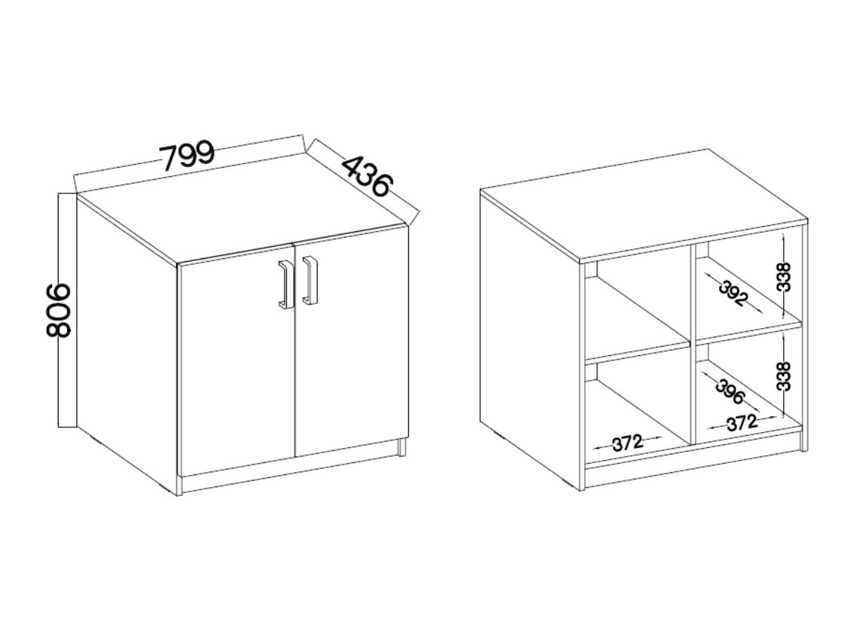 K dispozici má úložný prostor v podobě uzavřených polic, do kterých můžete snadno a přehledně uložit veškeré nezbytnosti. Pro snadnější manipulaci při otevírání, jsou k dispozici úchytky tmavé barvy.